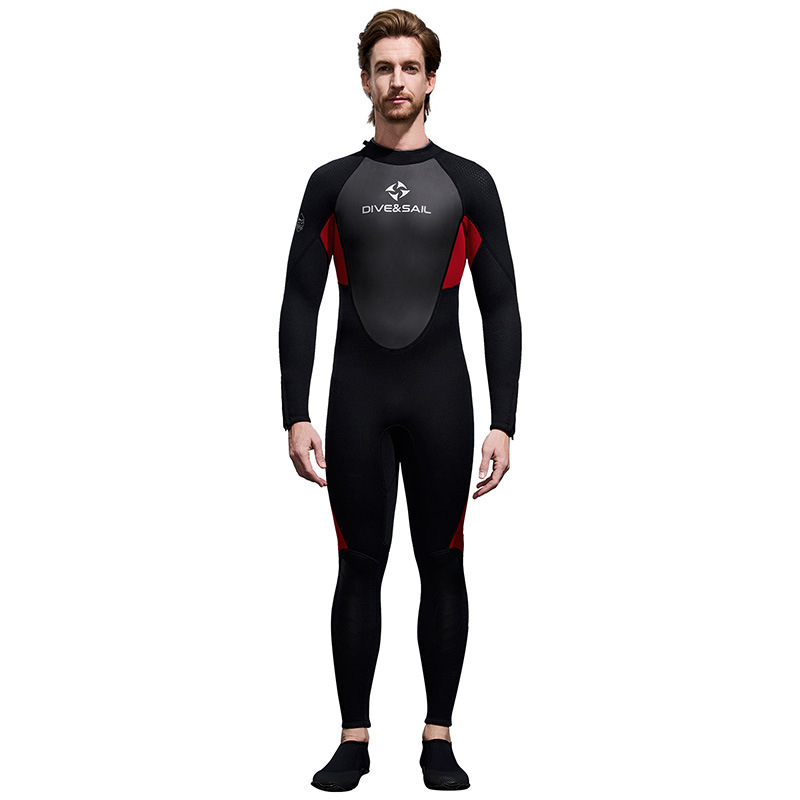 DIVE&SAIL 잠수복 3MM 원피스 긴팔 잠수복 남성용 두꺼운 방한 스노클링 서핑 겨울 수영 해파리 슈트