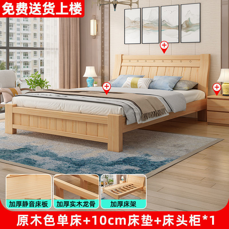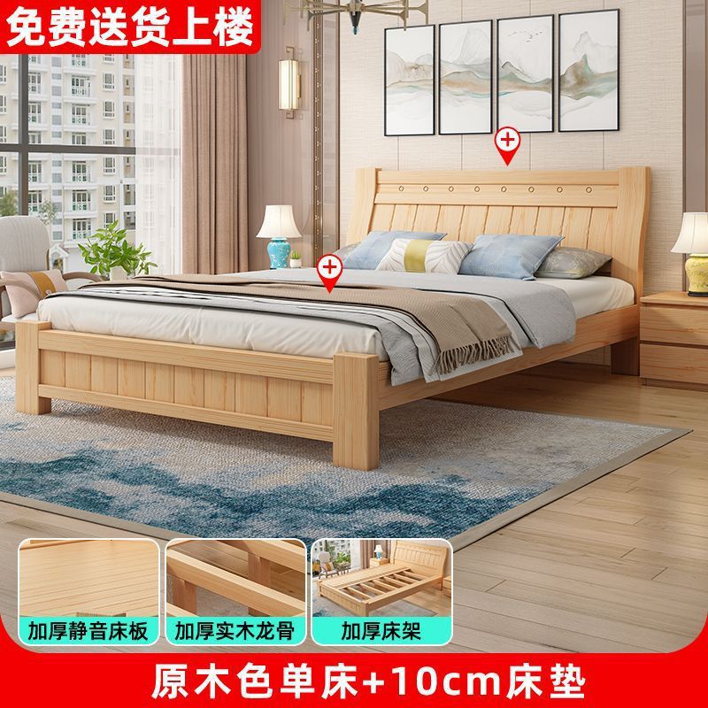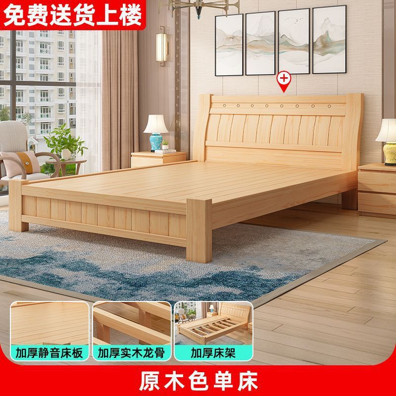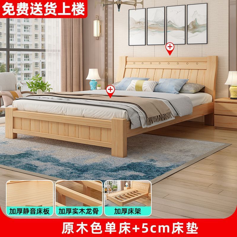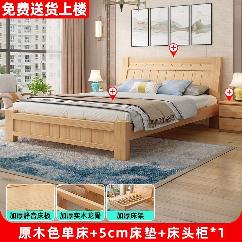 단단한 나무 침대 1.8 m 소나무 더블 침대 1.5 현대 간단한 경제적인 임대 방 간단한 단단한 나무 싱글 침대스토어 가기