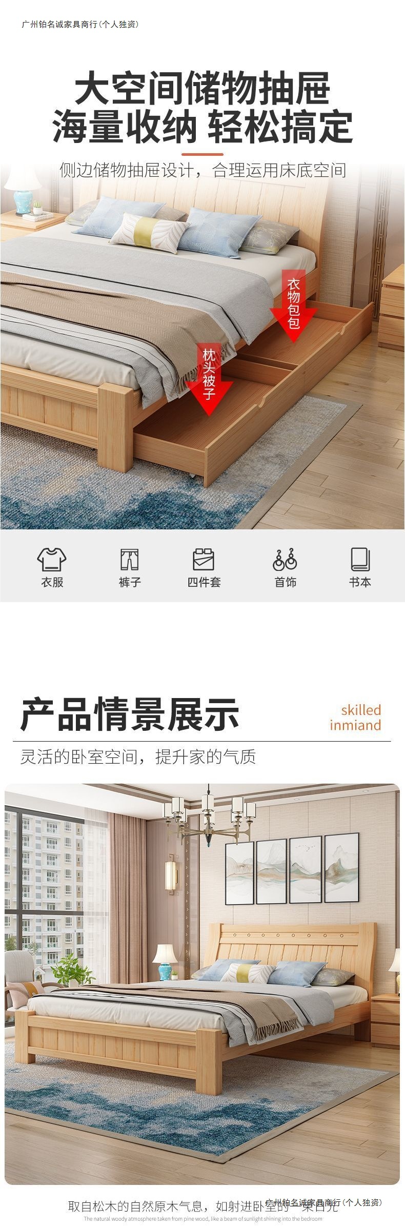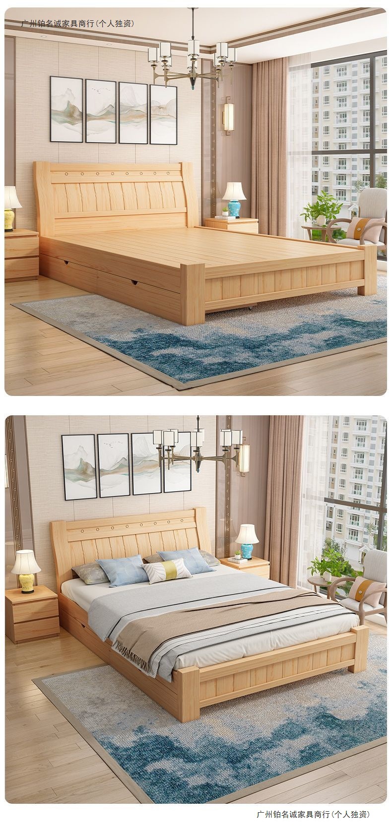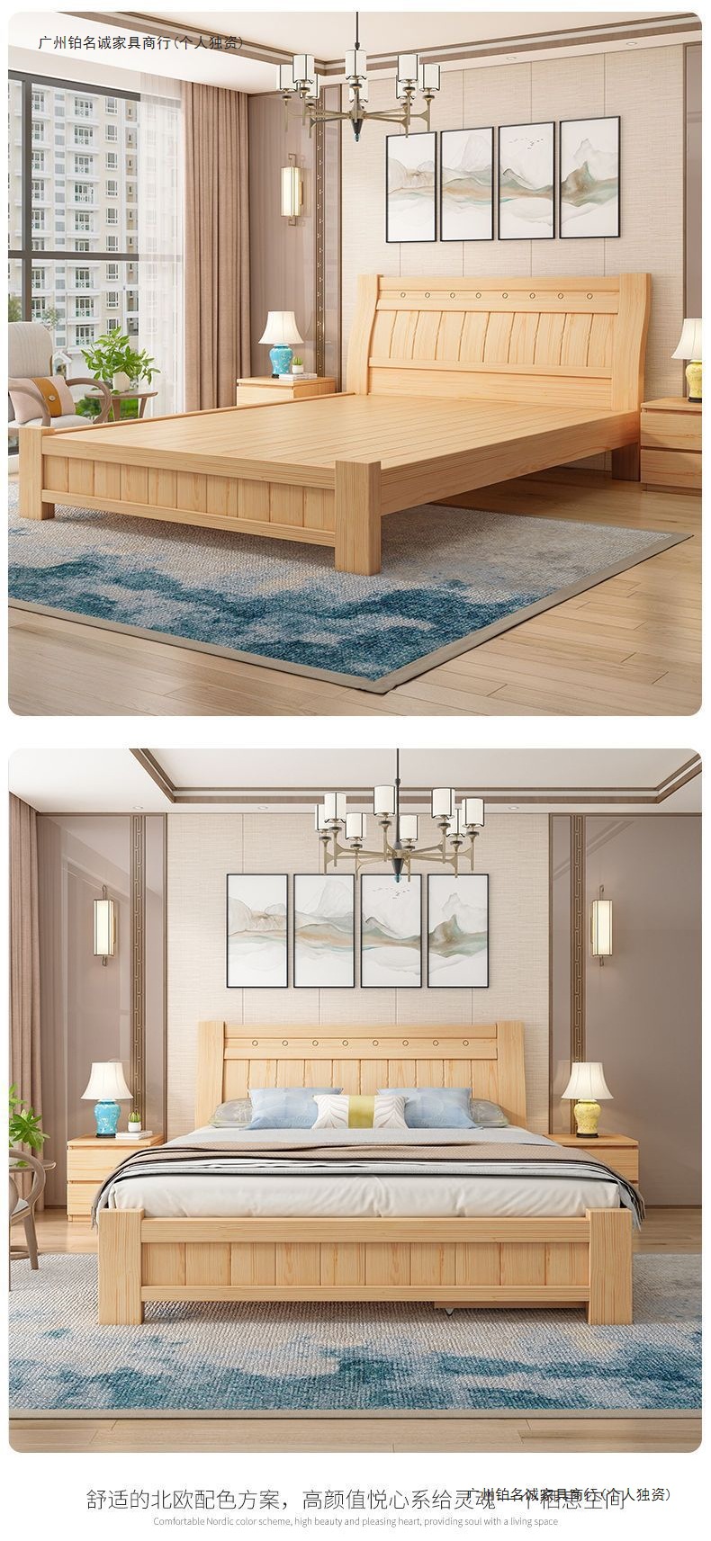 단단한 나무 침대 1.8 m 소나무 더블 침대 1.5 현대 간단한 경제적인 임대 방 간단한 단단한 나무 싱글 침대스토어 가기