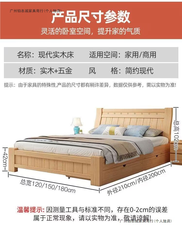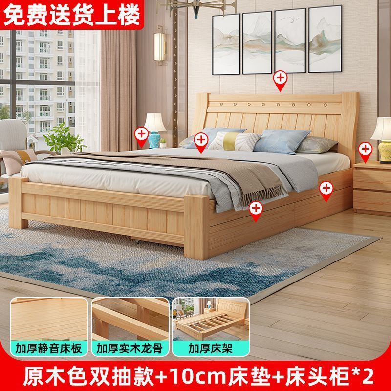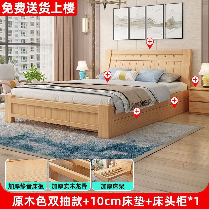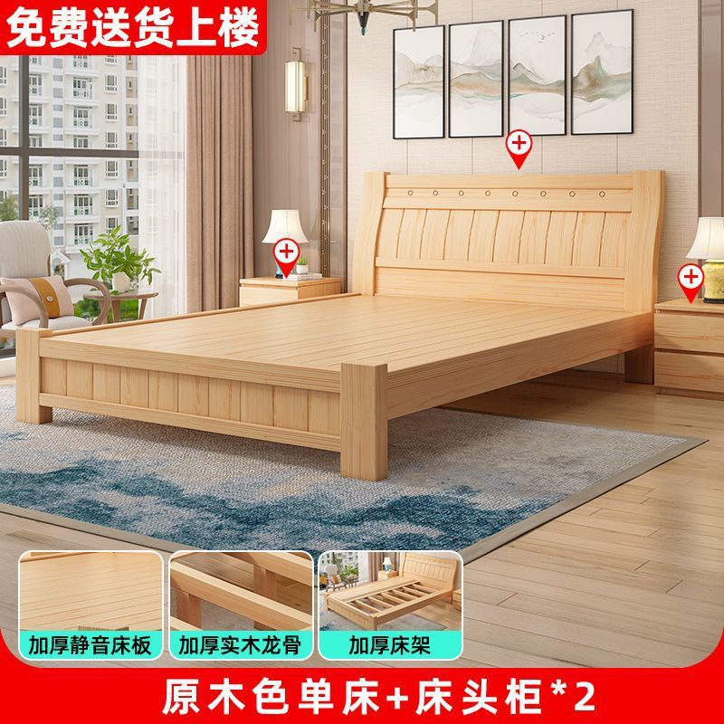 단단한 나무 침대 1.8 m 소나무 더블 침대 1.5 현대 간단한 경제적인 임대 방 간단한 단단한 나무 싱글 침대
