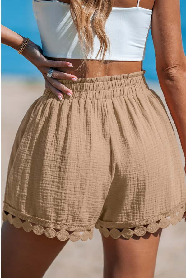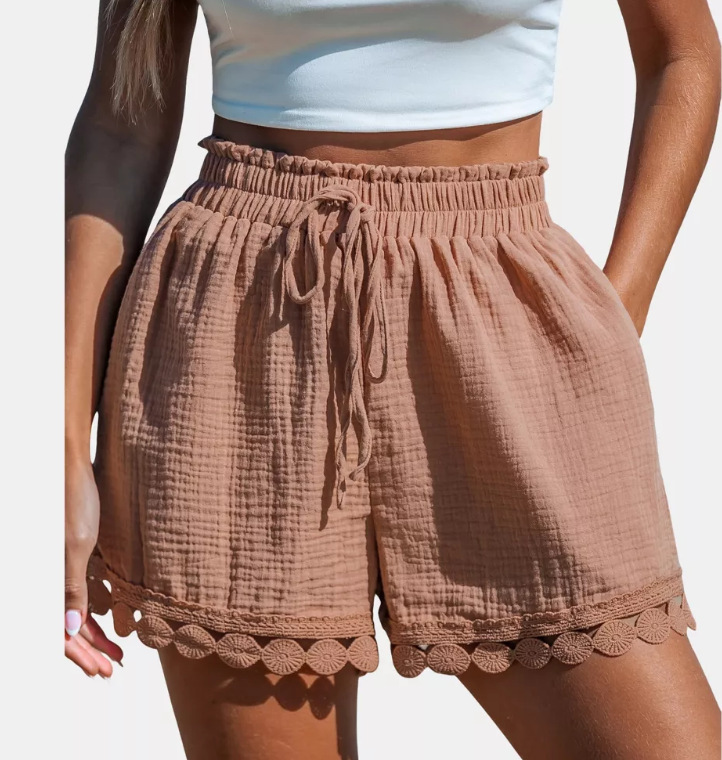 2025 국경을 넘는 유럽과 미국의 봄과 여름 새로운 여성 패션 레이스 비치 캐주얼 루즈 레이스 반바지스토어 가기