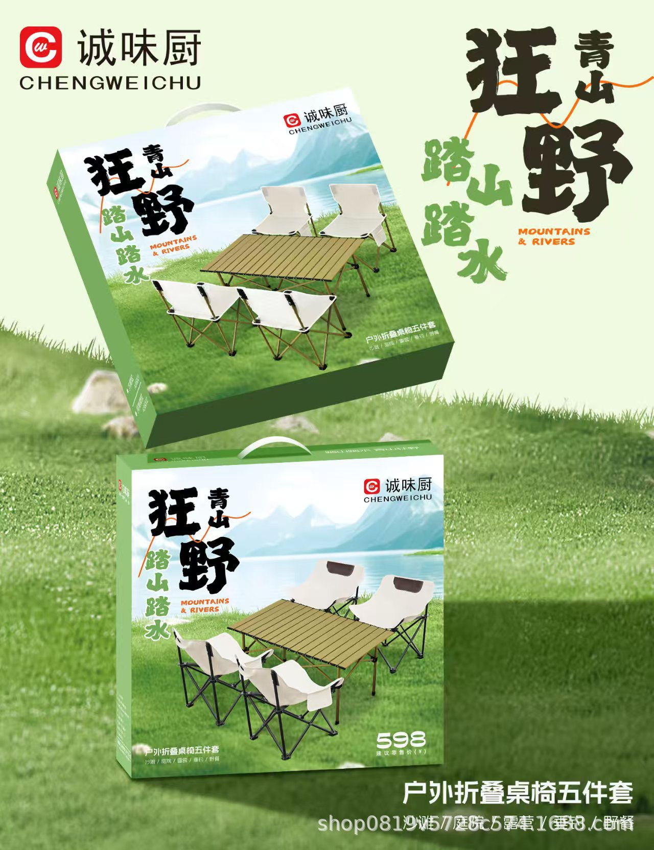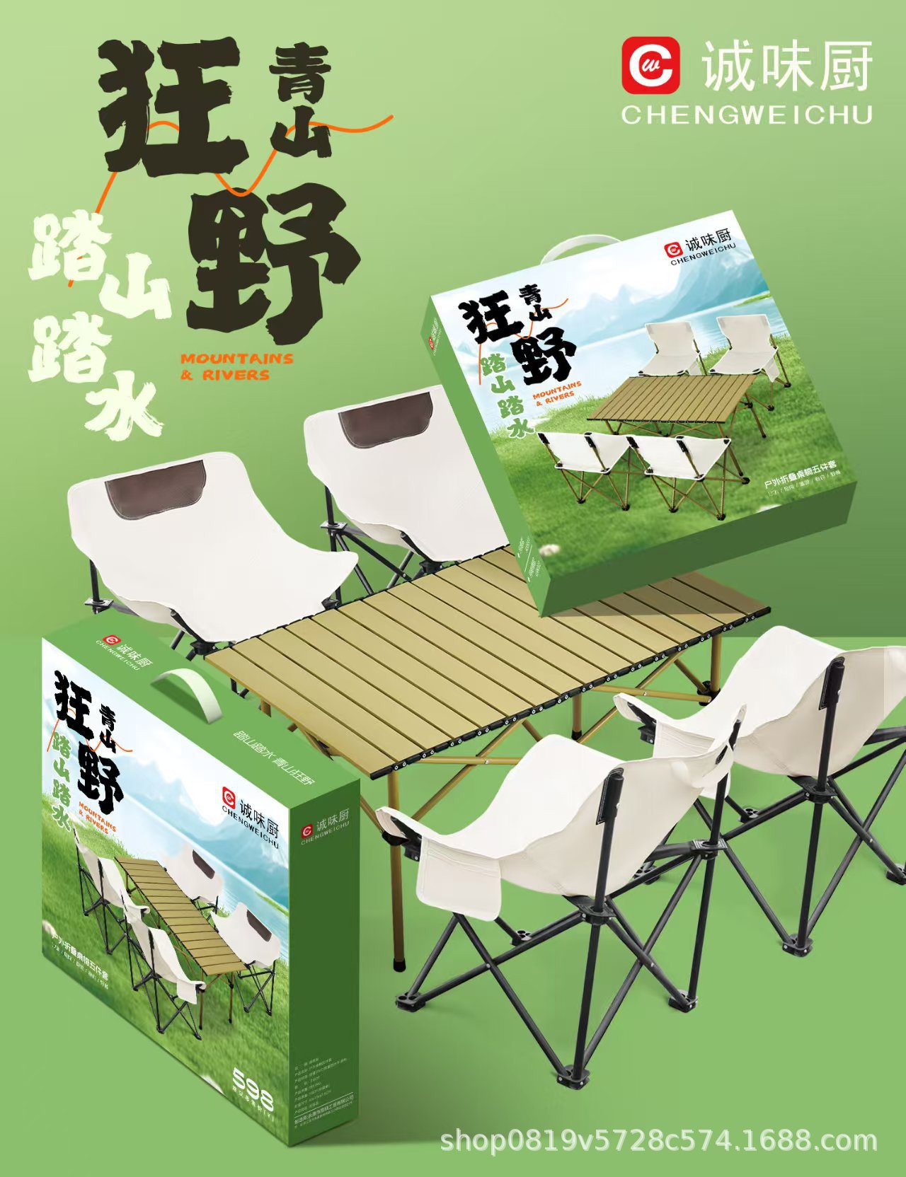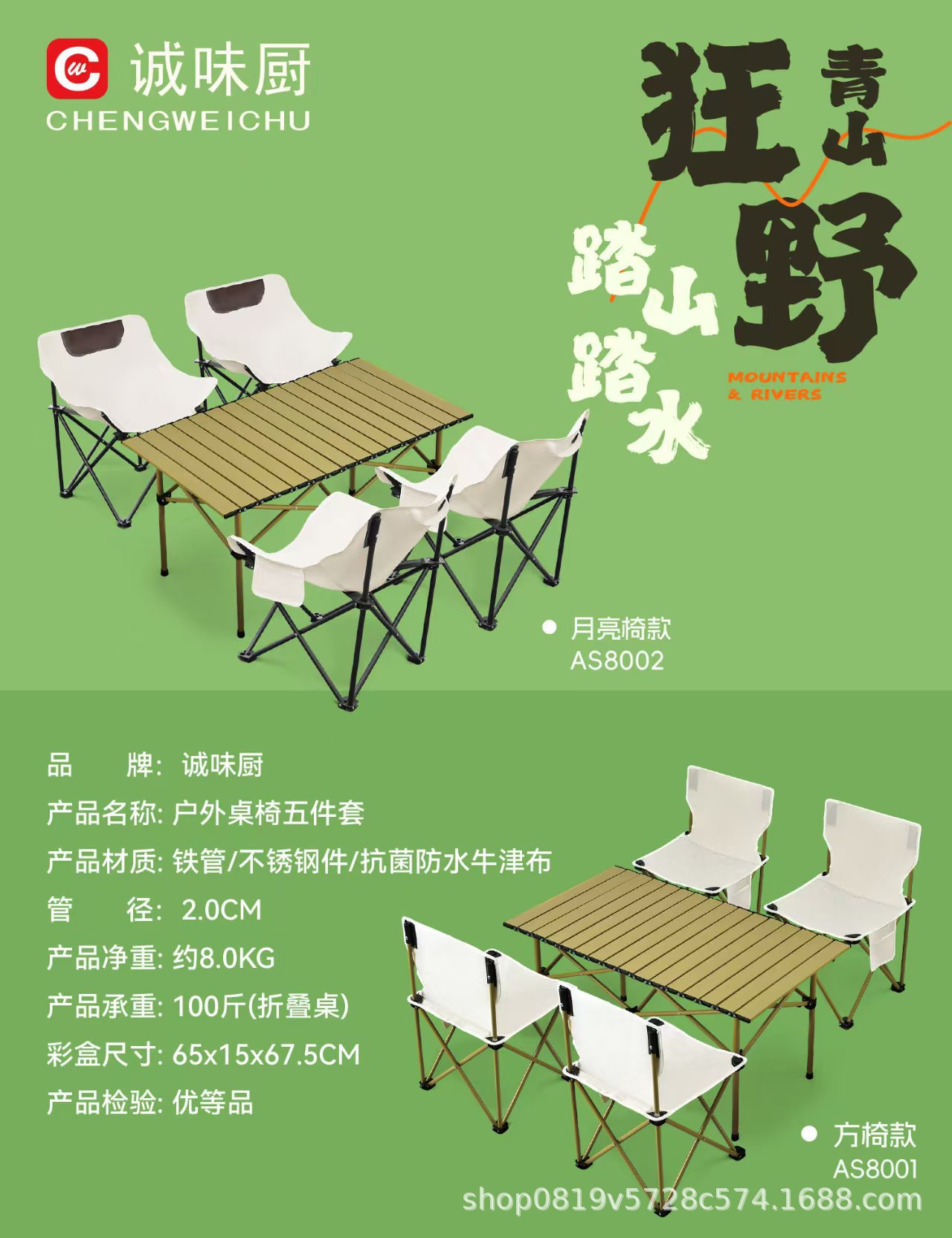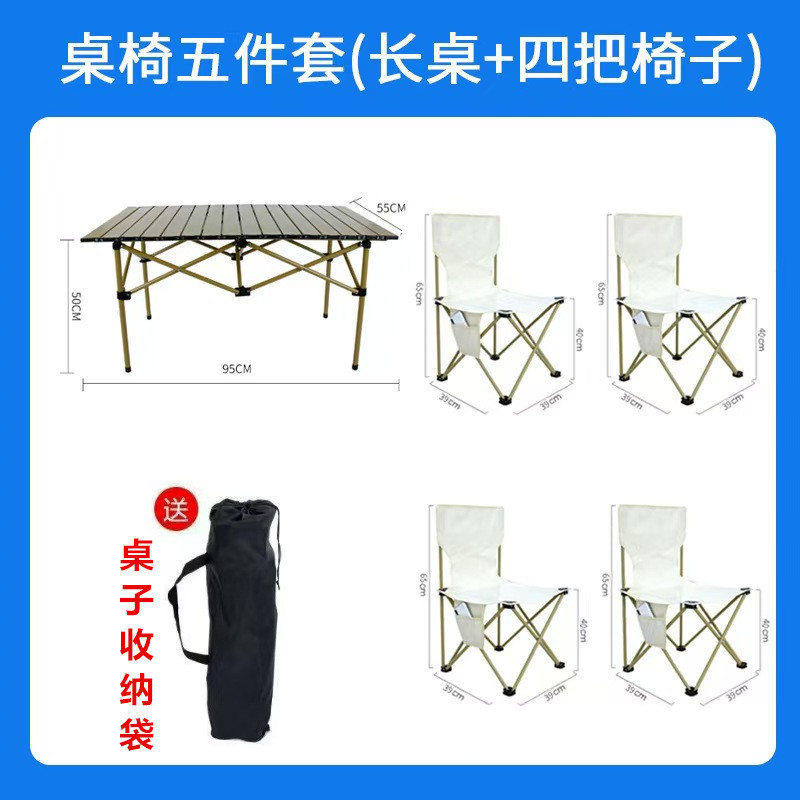 야외 접이식 테이블과 의자 5종 세트, 문체어 세트, 계란말이 테이블, 휴대용 캠핑 장비, 7종 세트