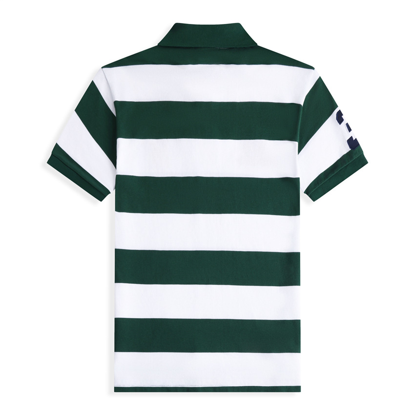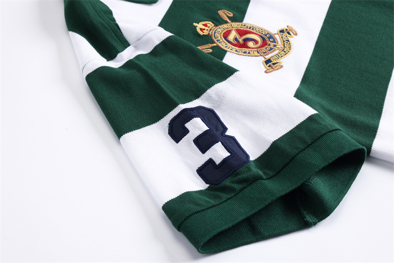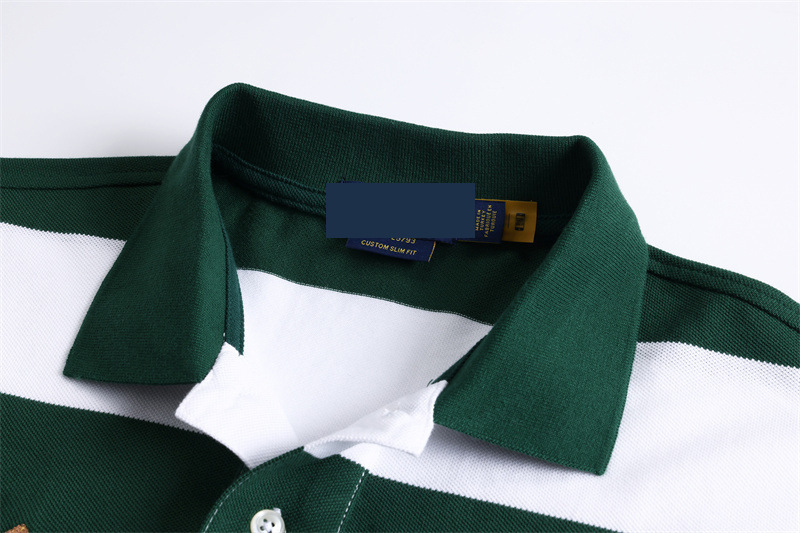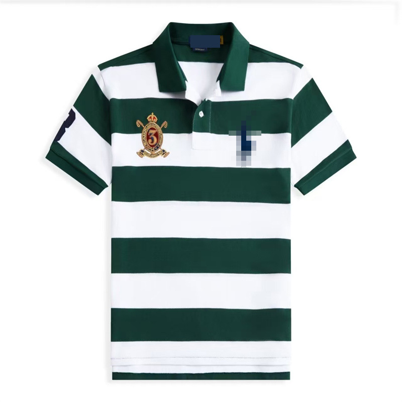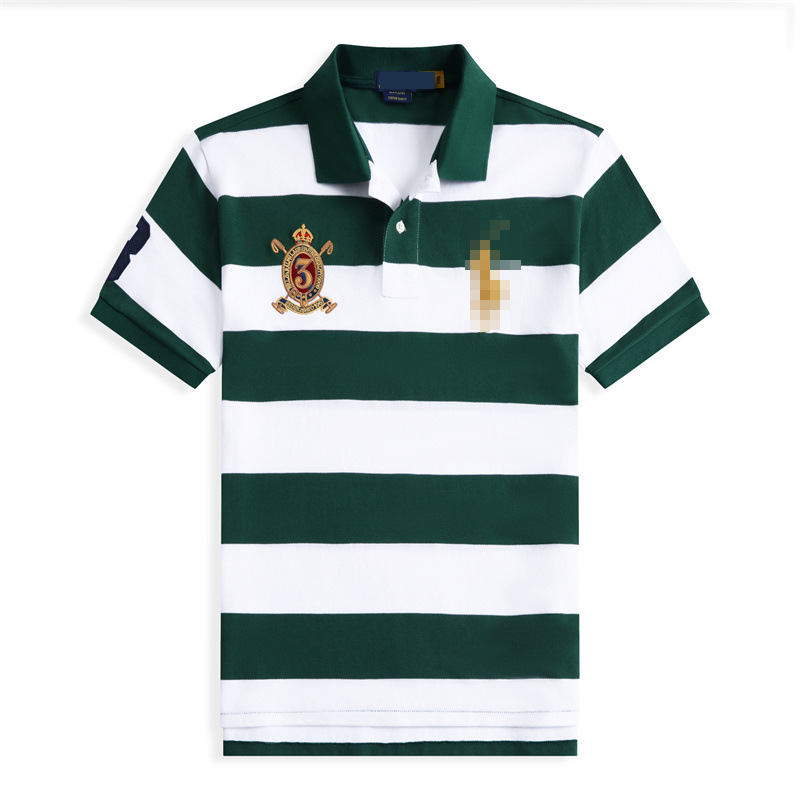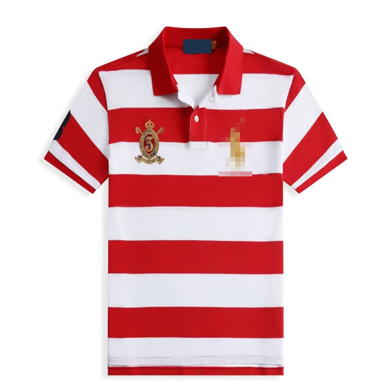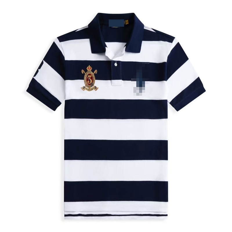 국경 간 RL 여름 새로운 남성 반팔 폴로 셔츠 패션 스트라이프 반팔 티셔츠 남성 옷깃 자수 티셔츠