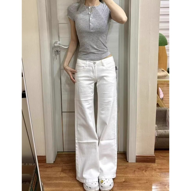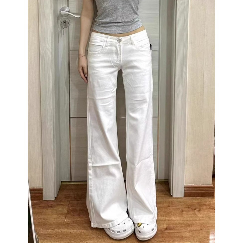 여성용 화이트 핫걸 로우 웨이스트 부츠컷 청바지, 루즈한 봄, 가을, 다리에 꼭 맞지 않는, 다용도, 플러스 사이즈, 작은 사람들을 위한 바닥 길이 바지스토어 가기