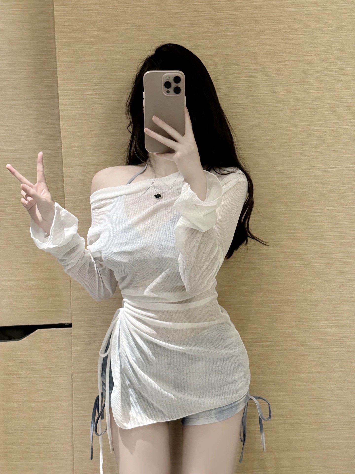 2025 신상 원 숄더 슬리밍 긴팔 블라우스 Pure Desire 온천 리조트 스플릿 수영복 여성 비키니 3 피스 세트