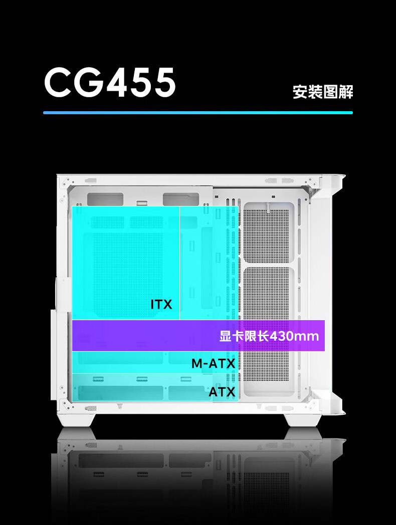 • CG455 흰색 [일체형 곡면 유리] 팬 및 전원 공급 장치가 없는 빈 상자