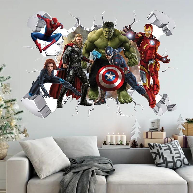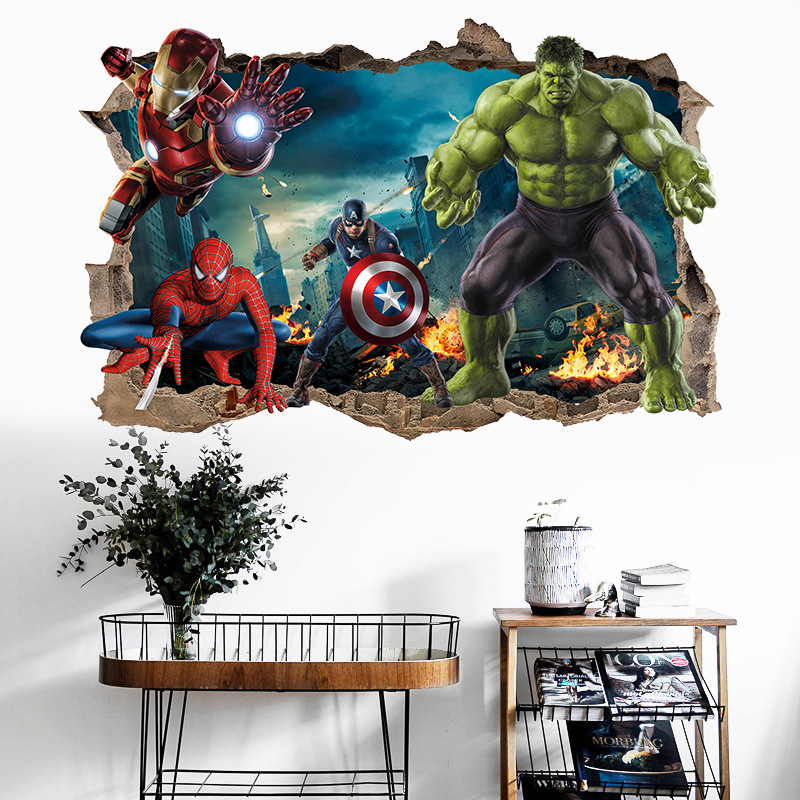 국경 간 대외 무역 마블 3D 벽 스티커 포스터 어벤져 아이언 맨 기숙사 침실 거실 소년 어린이 방 스티커