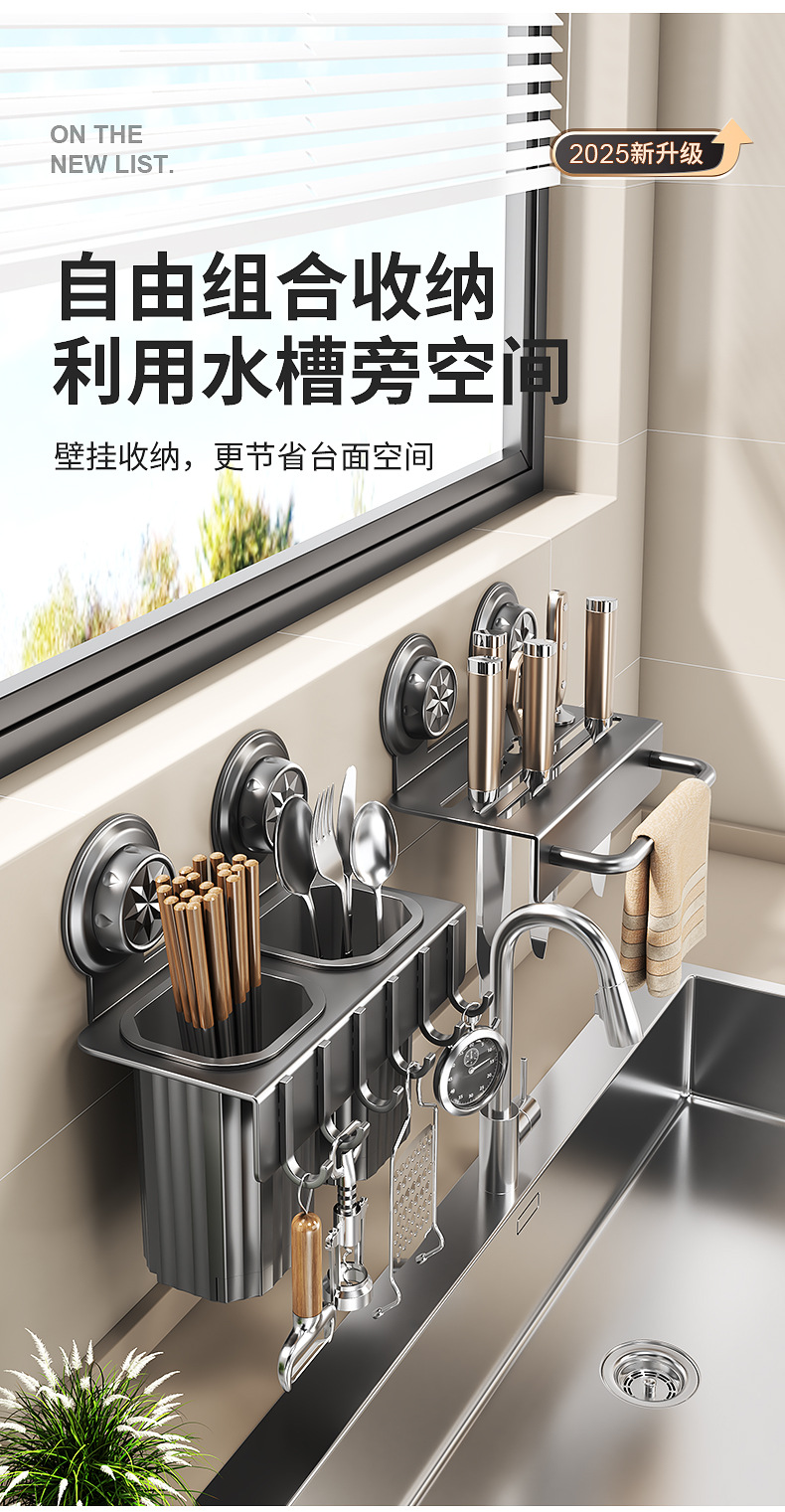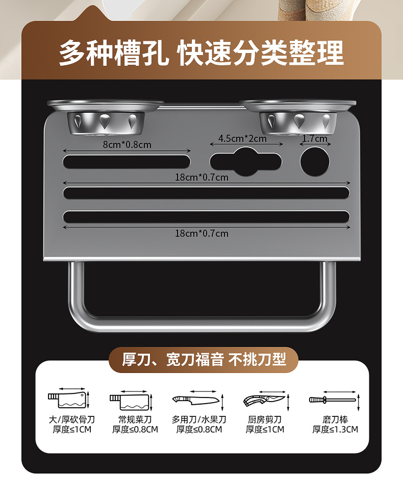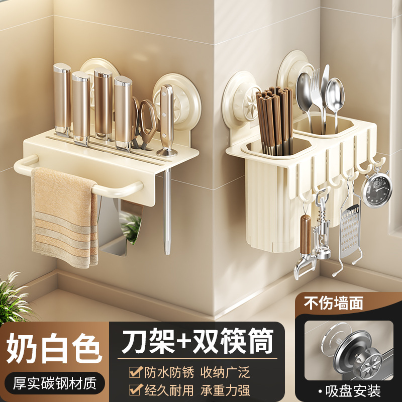 칼걸이 수납선반 주방 가정용 벽걸이형 다기능 주방칼걸이 젓가락통 칼젓가락 케이지 일체형 수납선반