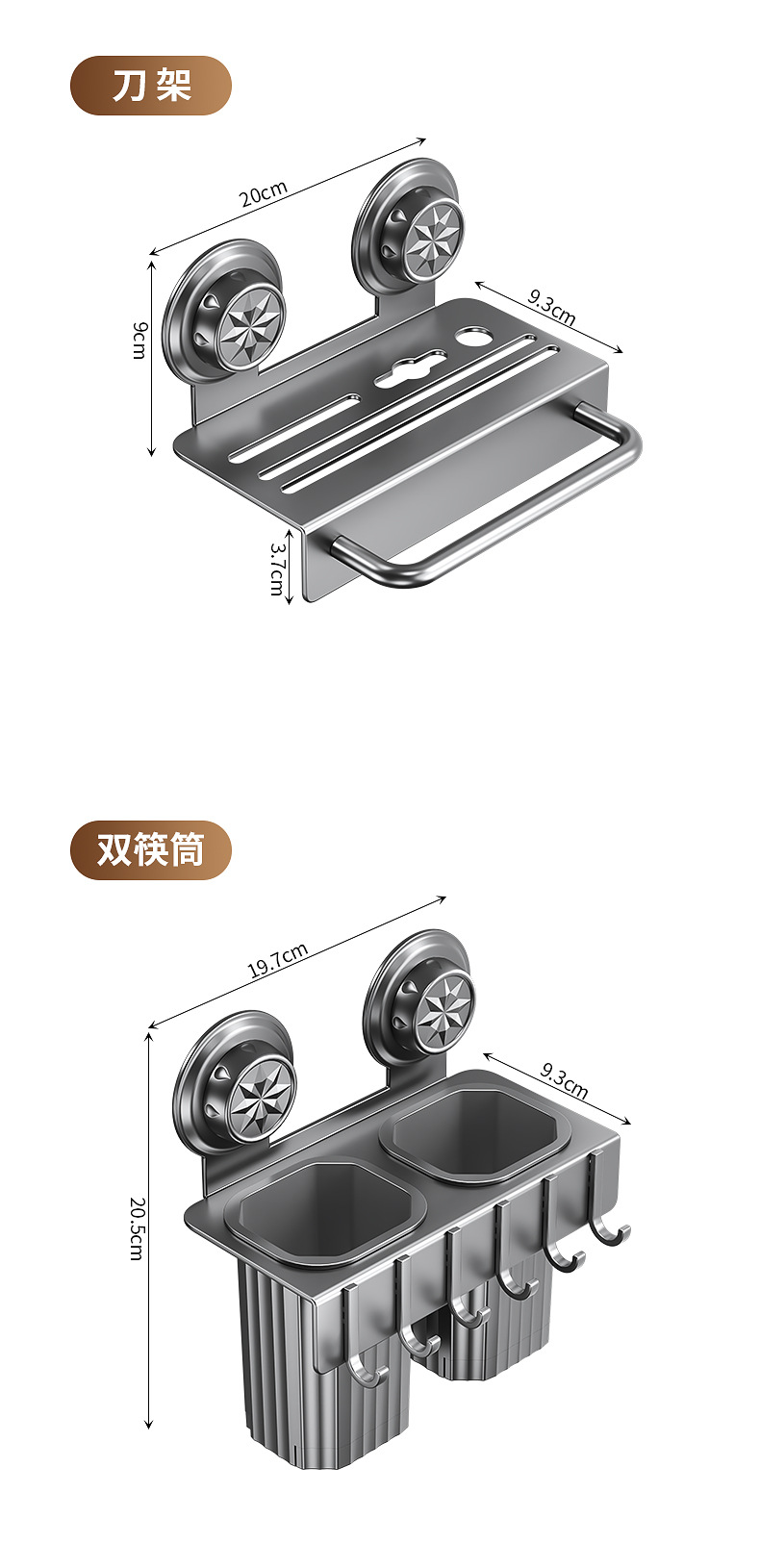 • 건애쉬 [흡착컵 칼꽂이 + 흡착컵 이중젓가락홀더]