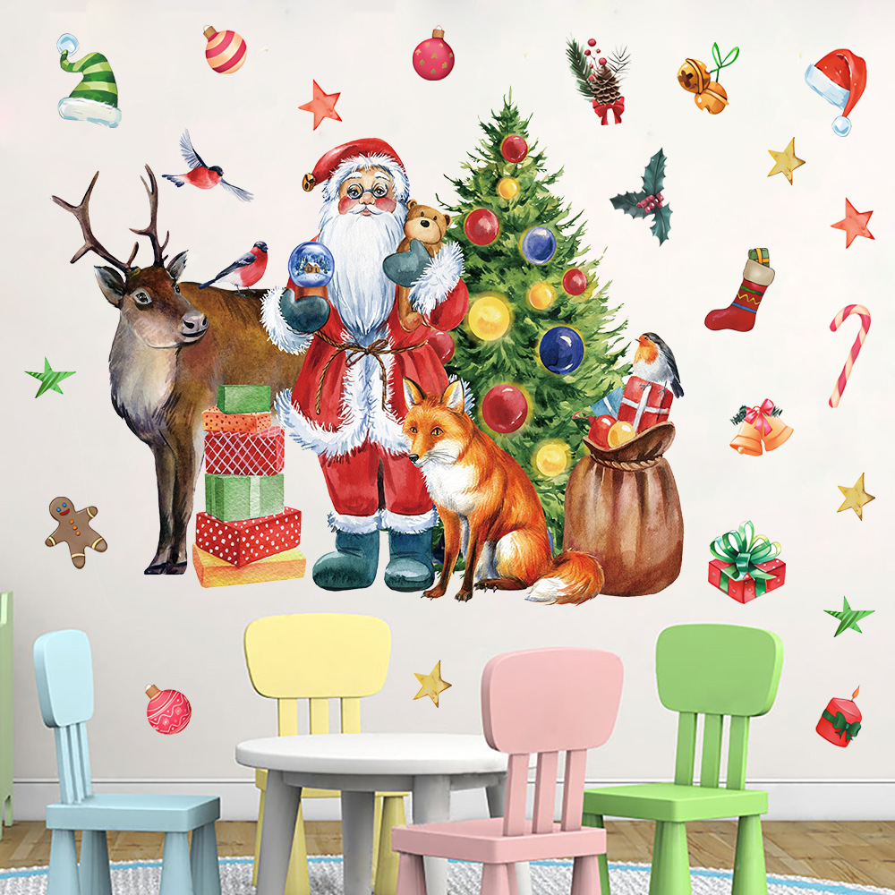 아마존 새로운 크리스마스 트리 벽 장식 벽 스티커 메리 크리스마스 휴일 분위기 침실 홈 스티커 벽지스토어 가기