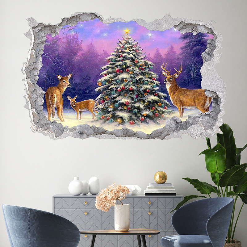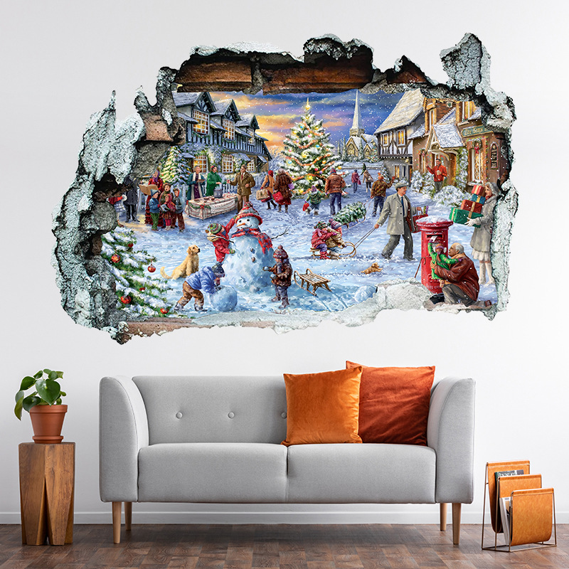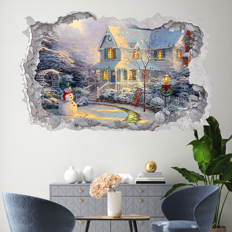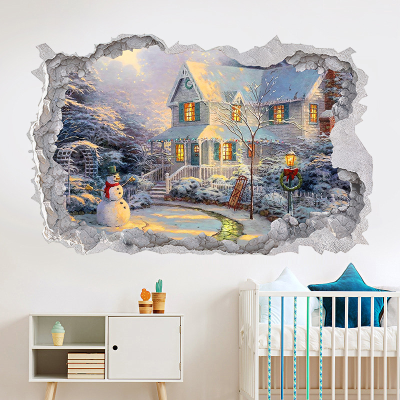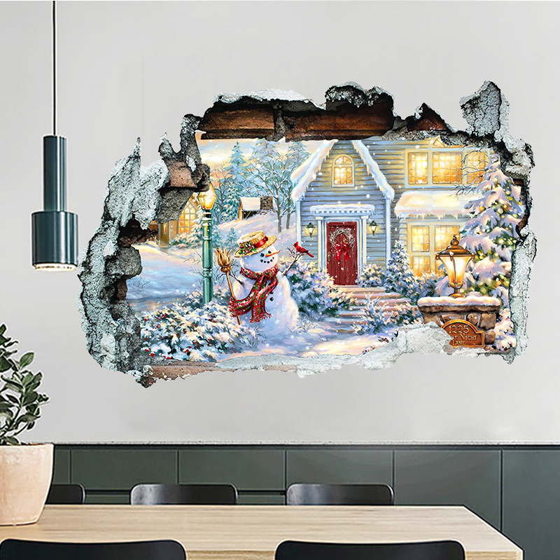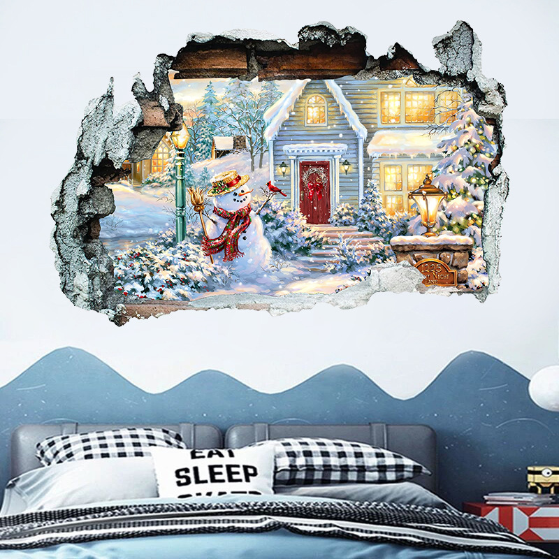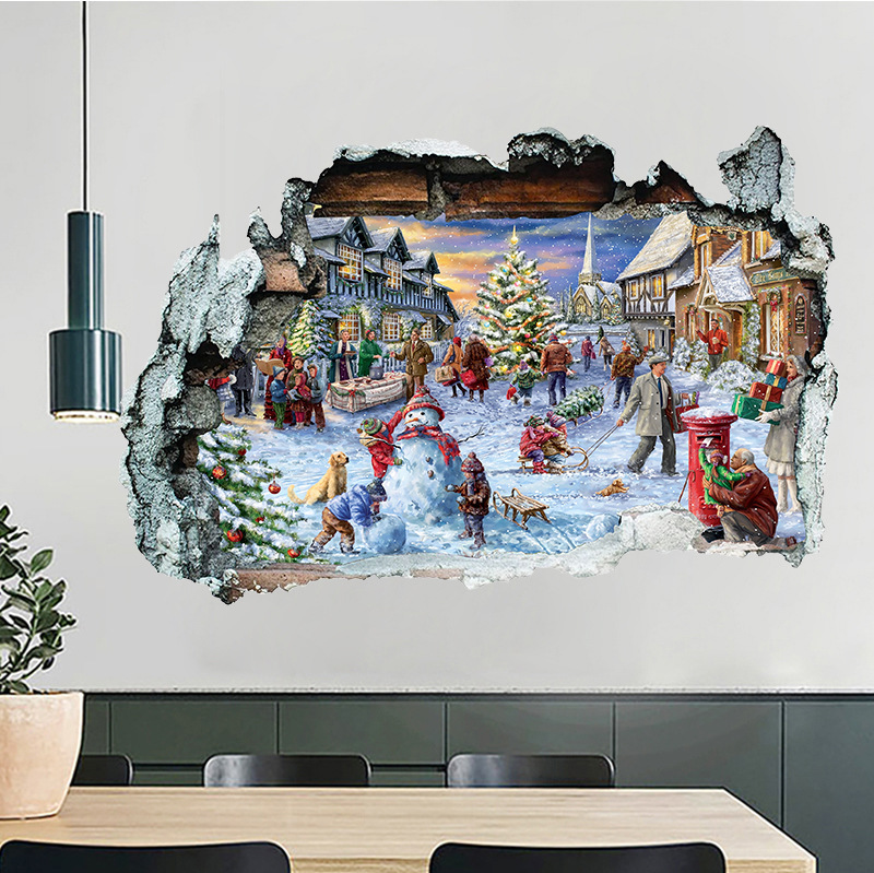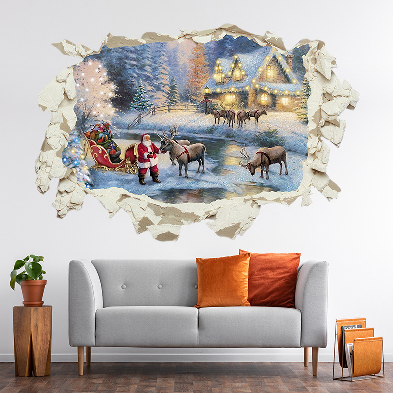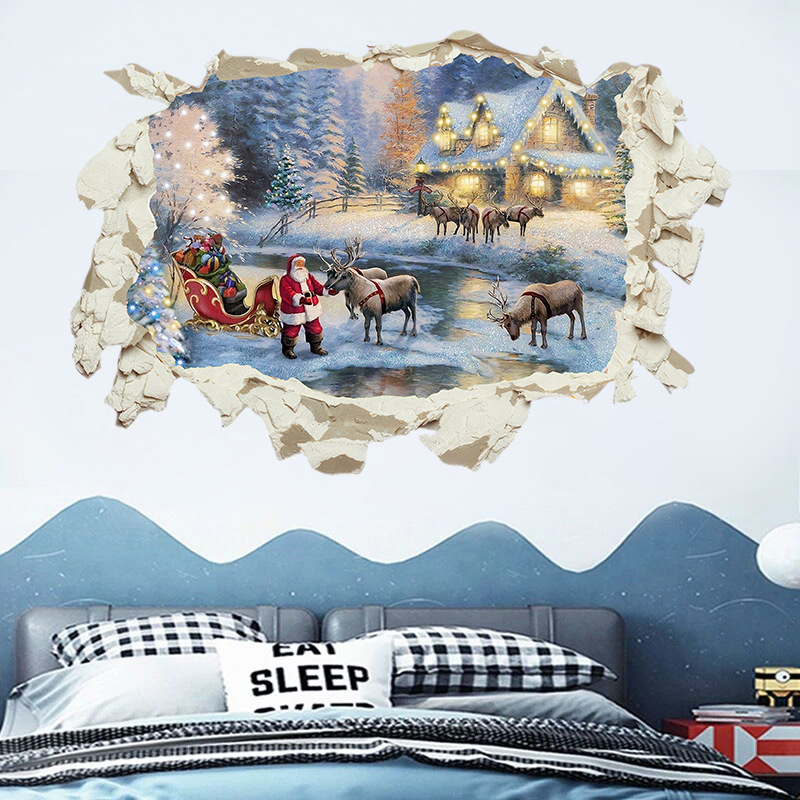 국경 새 크리스마스 분위기 장식 벽 스티커 산타 클로스 휴일 스티커 거실 장식 셀프 접착 벽 스티커스토어 가기