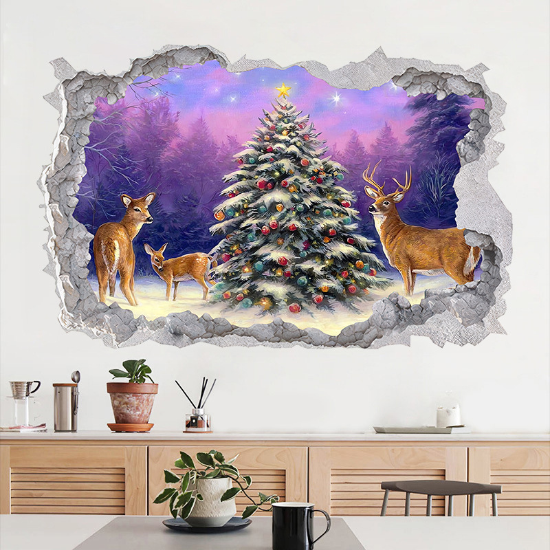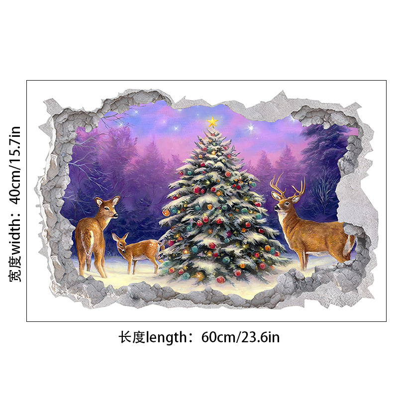 국경 새 크리스마스 분위기 장식 벽 스티커 산타 클로스 휴일 스티커 거실 장식 셀프 접착 벽 스티커