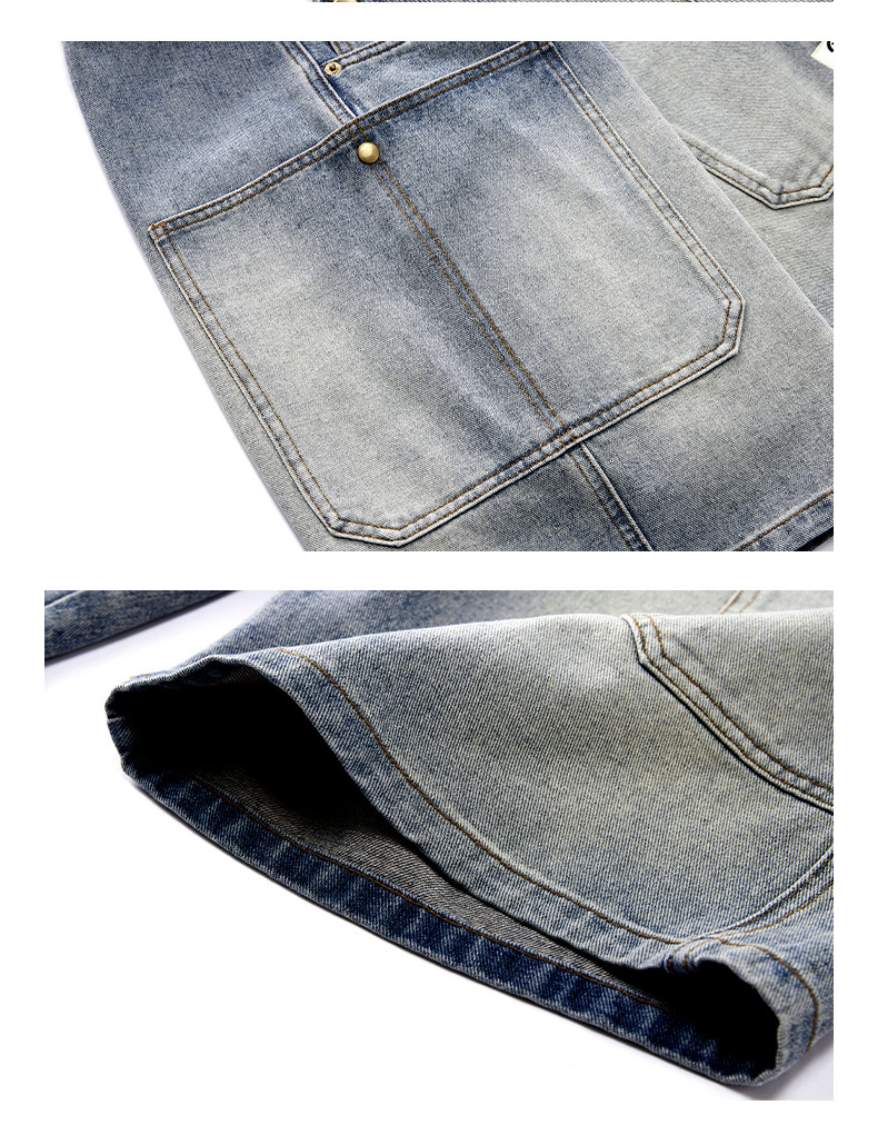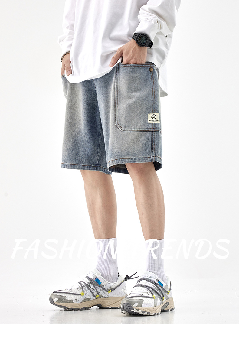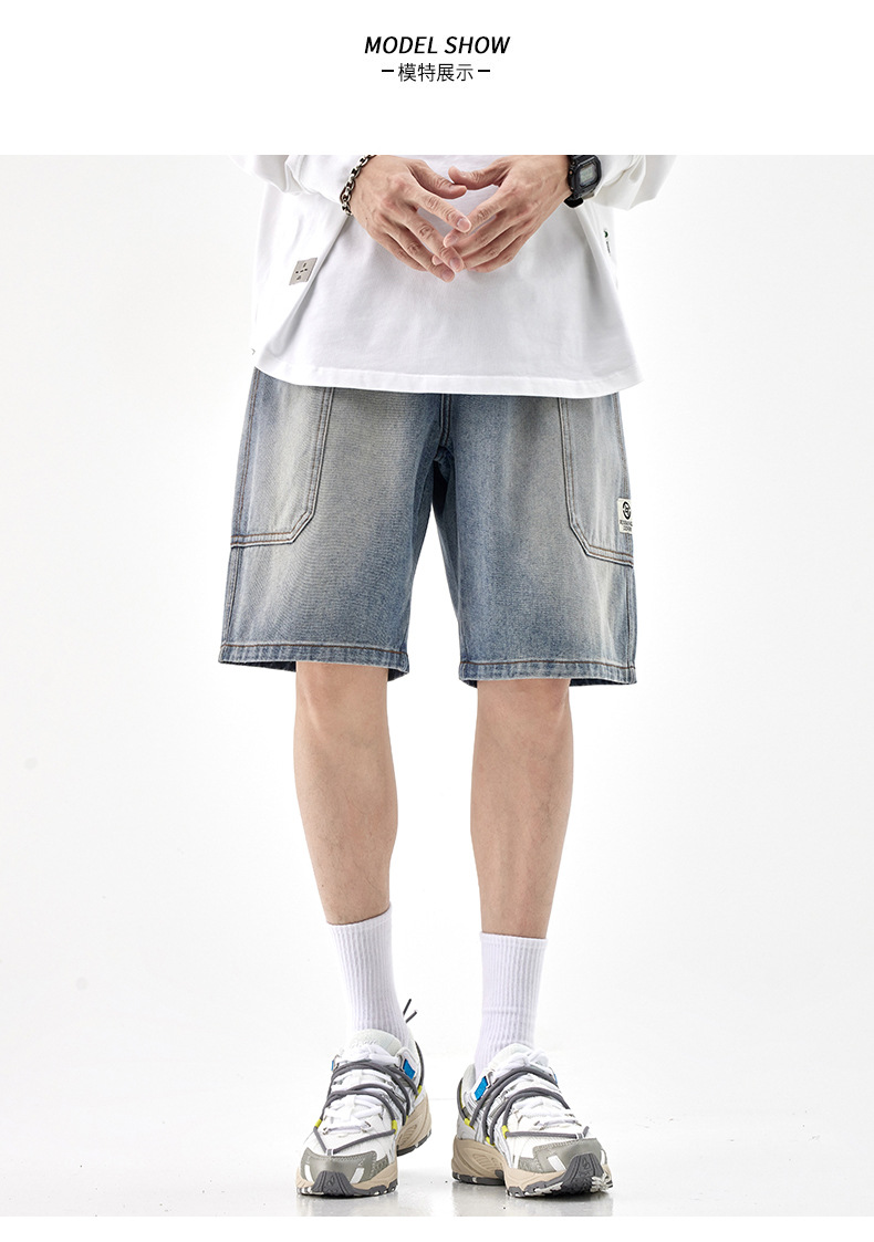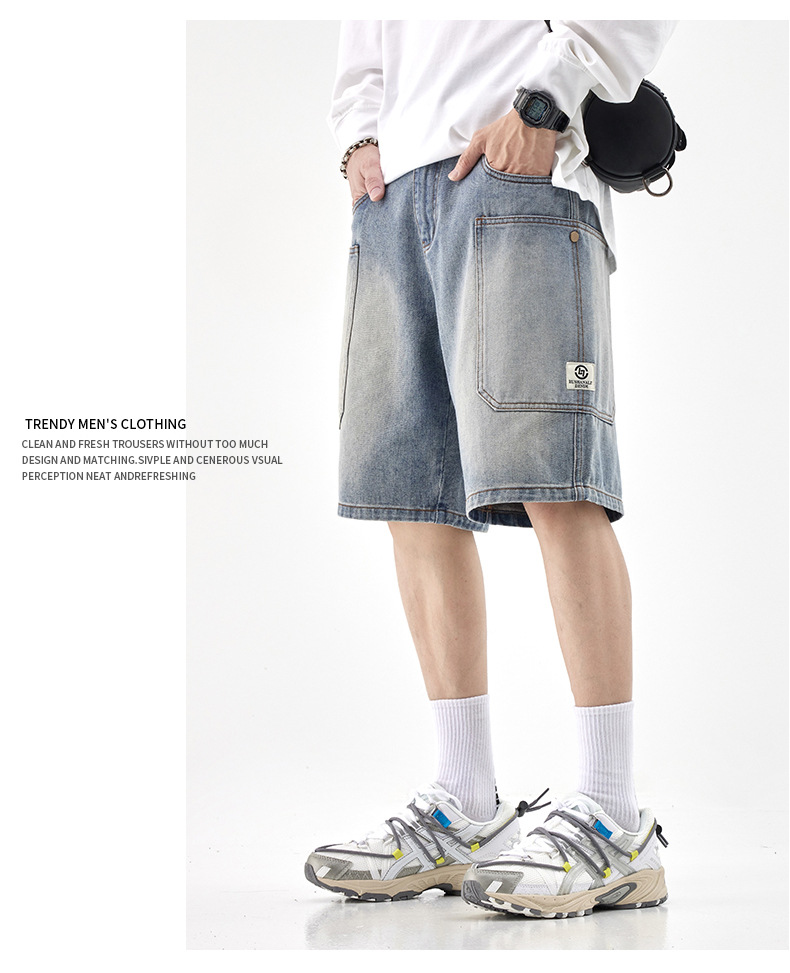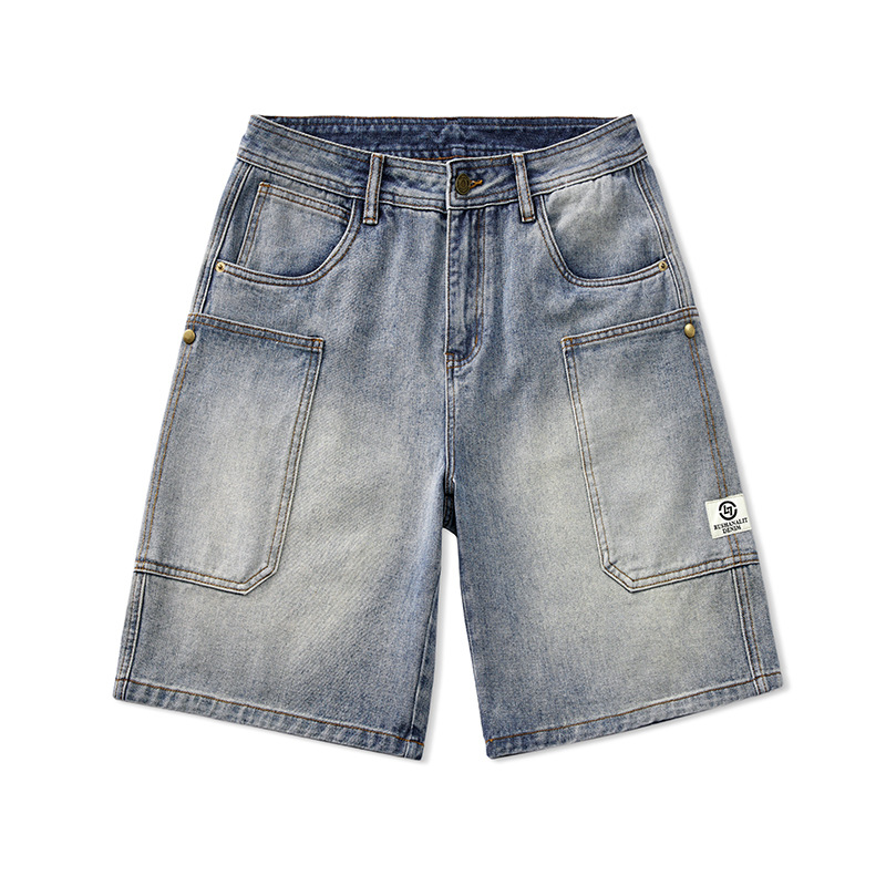 여름 아메리칸 스타일 헤비 트렌디 브랜드 데님 반바지 남성용 대형 포켓 느슨한 스트레이트 바지 남성용 캐주얼 트렌디 바지스토어 가기