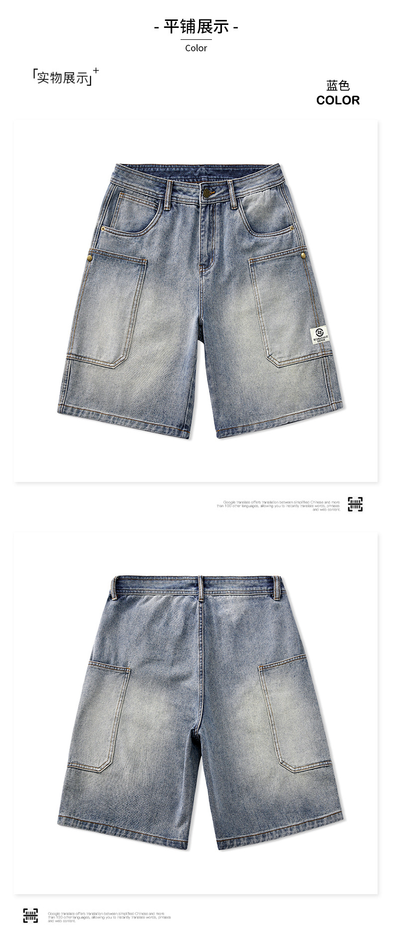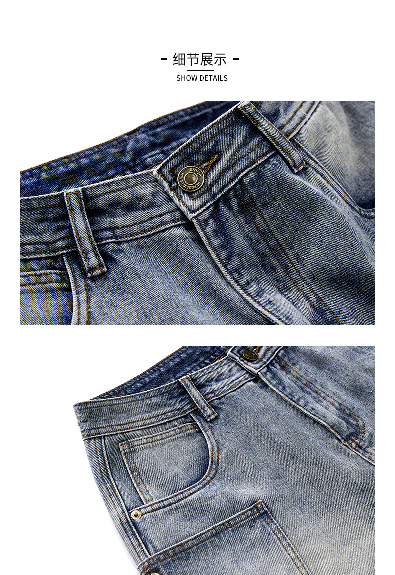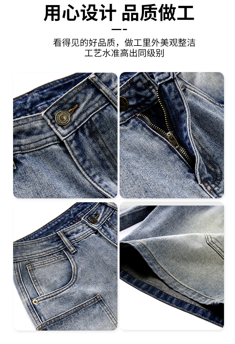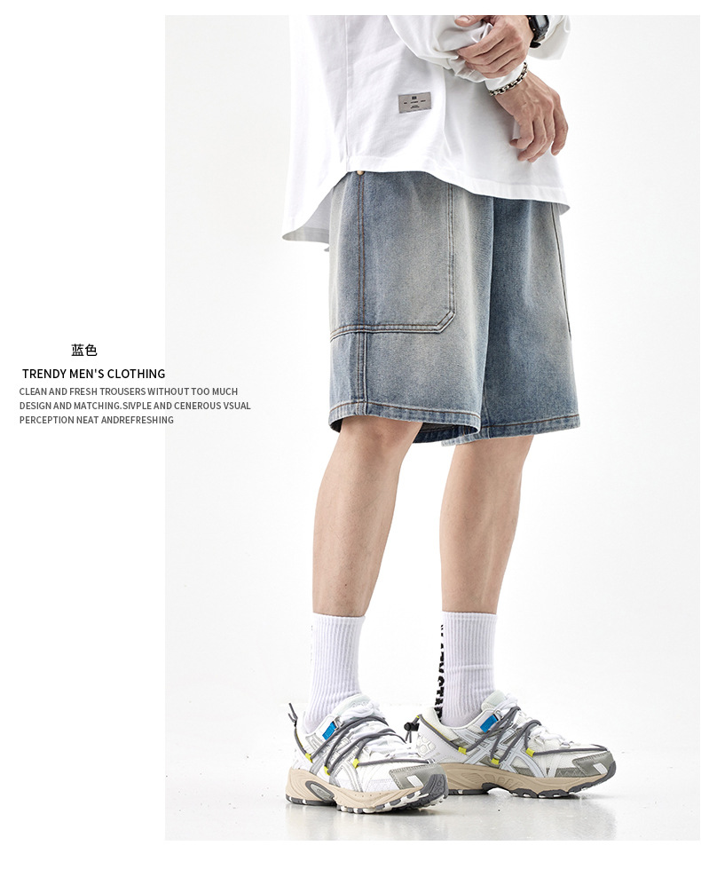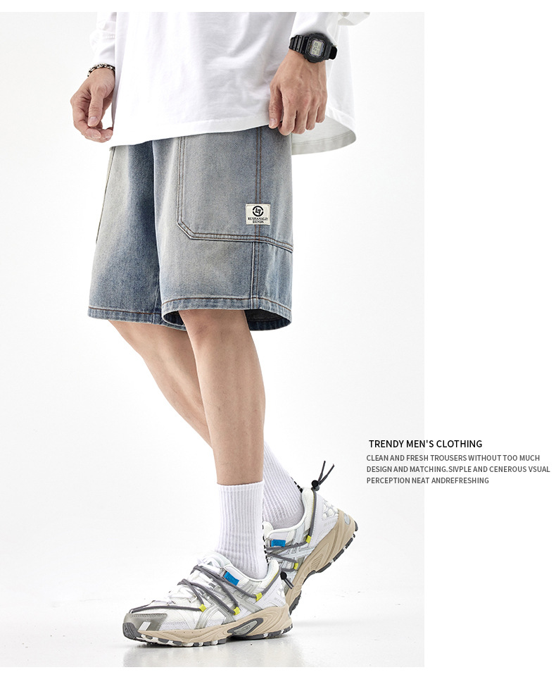 여름 아메리칸 스타일 헤비 트렌디 브랜드 데님 반바지 남성용 대형 포켓 느슨한 스트레이트 바지 남성용 캐주얼 트렌디 바지스토어 가기