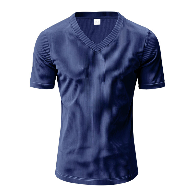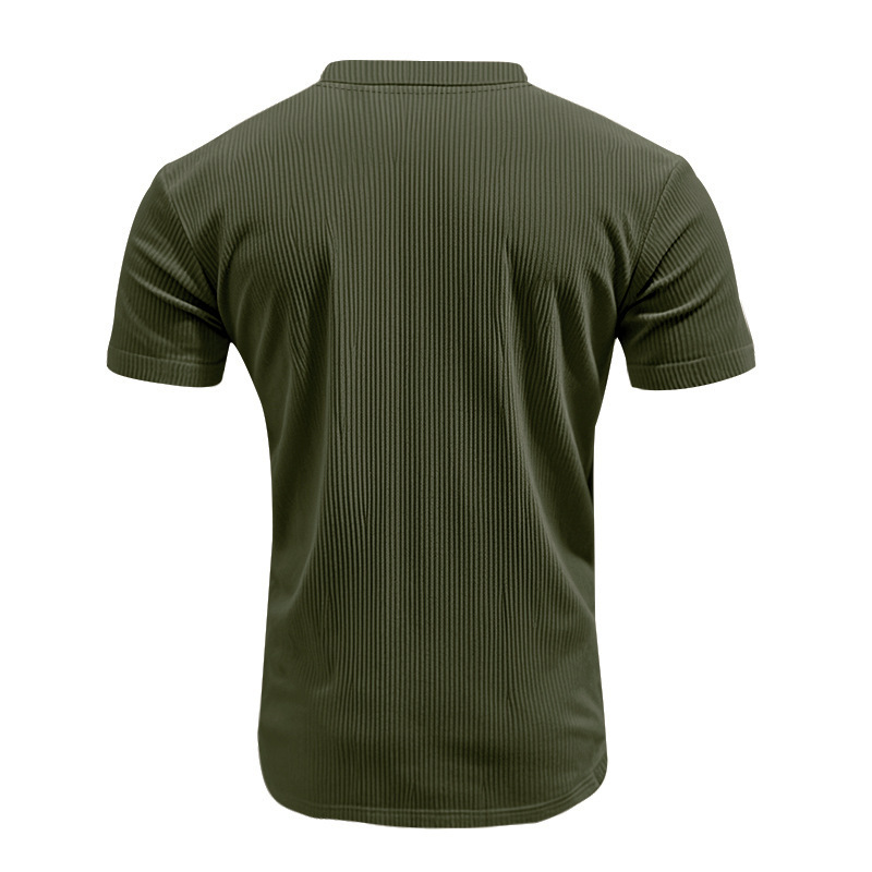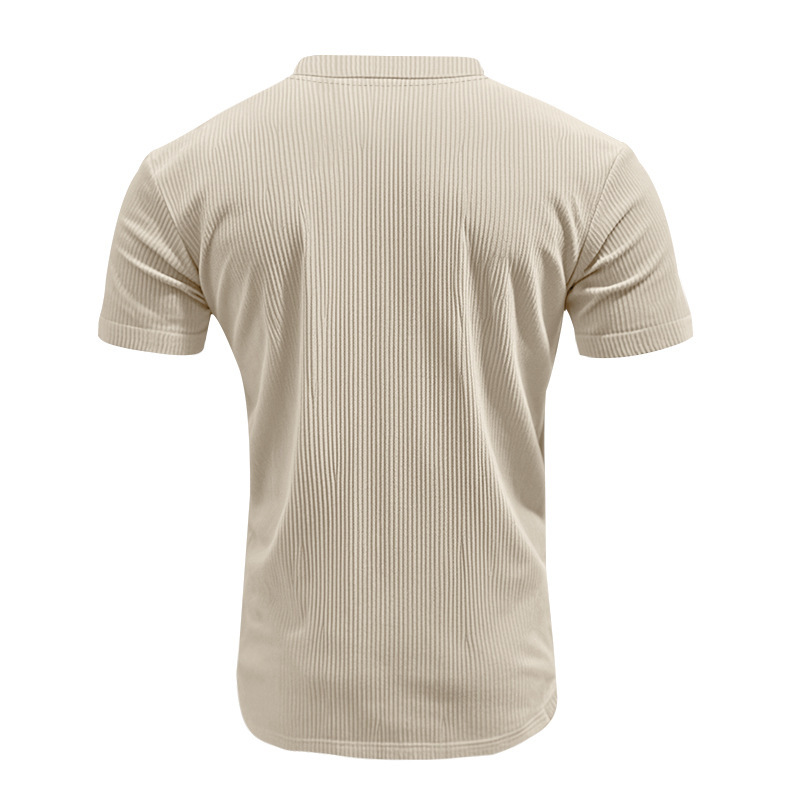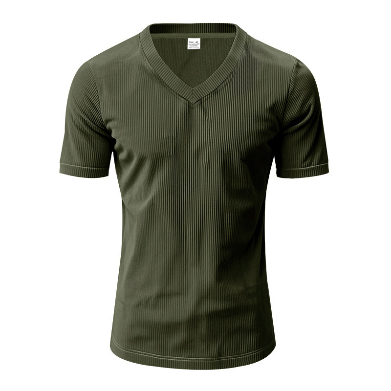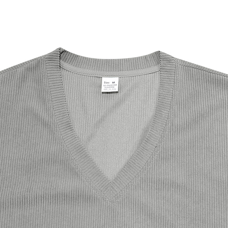 아마존 국경 2025 여름 미국 느슨한 캐주얼 통기성 남성 V 넥 티셔츠 피부 친화적 인 트렌디 코듀로이 짧은 소매