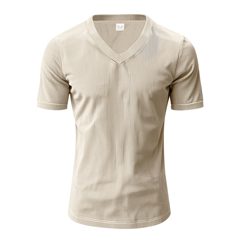 아마존 국경 2025 여름 미국 느슨한 캐주얼 통기성 남성 V 넥 티셔츠 피부 친화적 인 트렌디 코듀로이 짧은 소매스토어 가기
