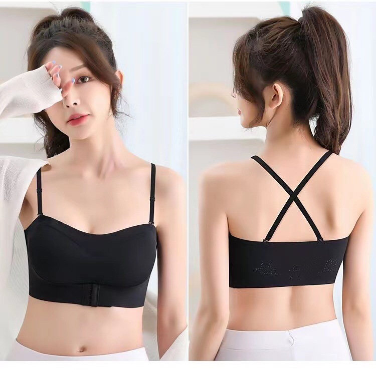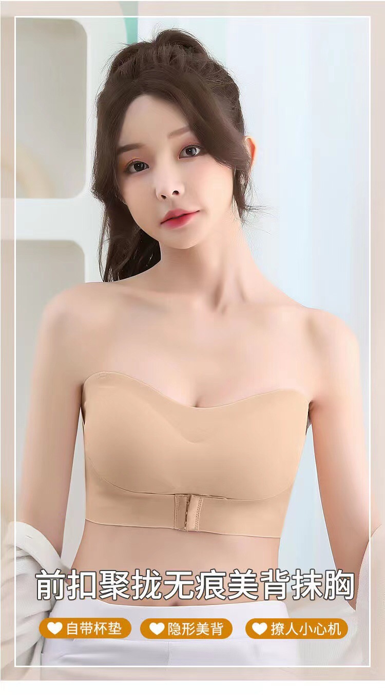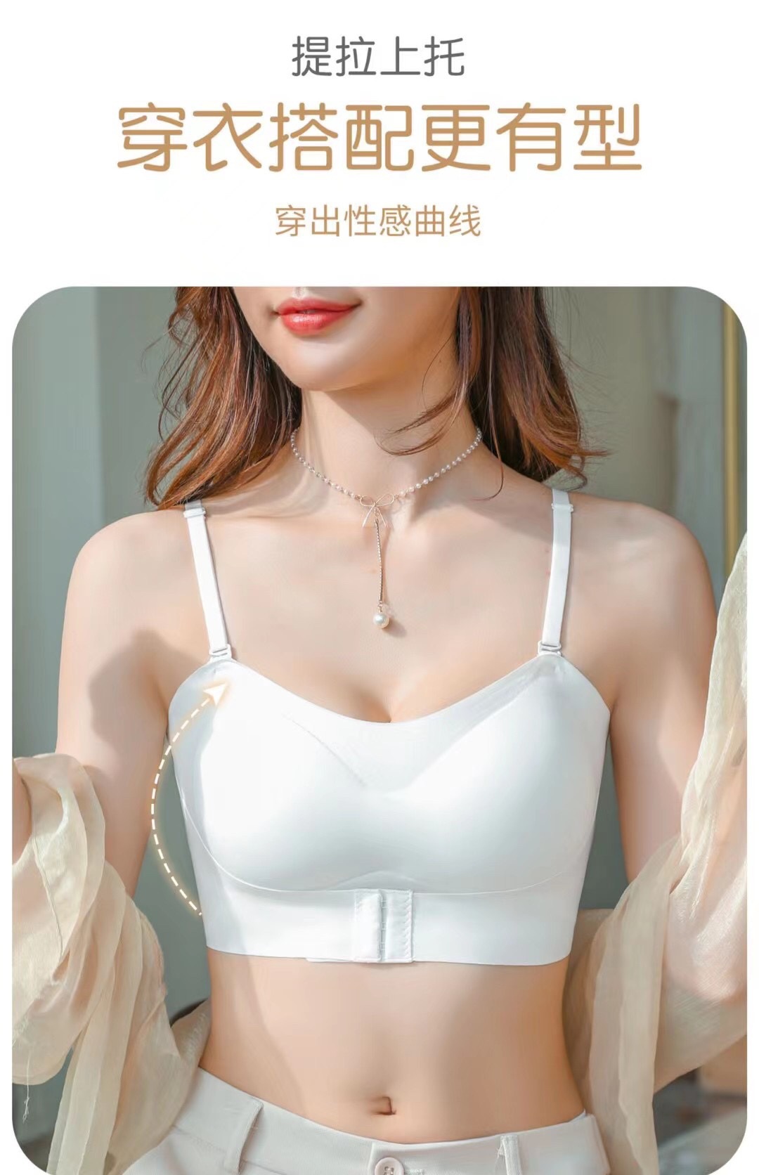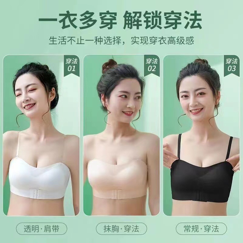 여름 심플한 스트랩리스 브라, 앞 버클, 미소녀 아름다운 등, 미끄럼 방지 푸쉬업 속옷, 작은 가슴, 얇은 와이어 프리 브라스토어 가기