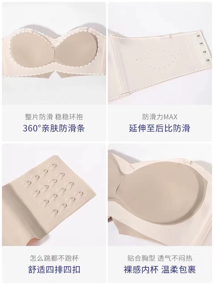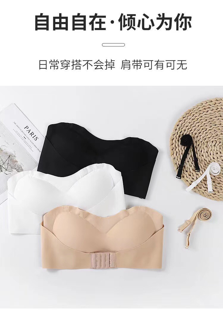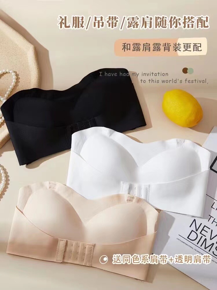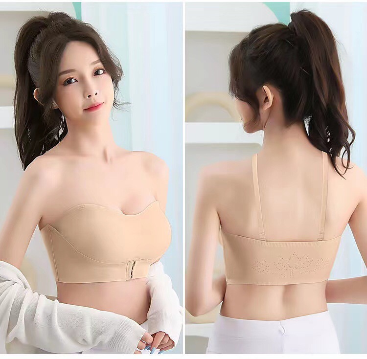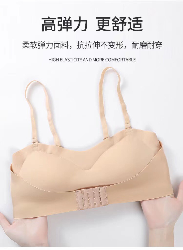여름 심플한 스트랩리스 브라, 앞 버클, 미소녀 아름다운 등, 미끄럼 방지 푸쉬업 속옷, 작은 가슴, 얇은 와이어 프리 브라스토어 가기