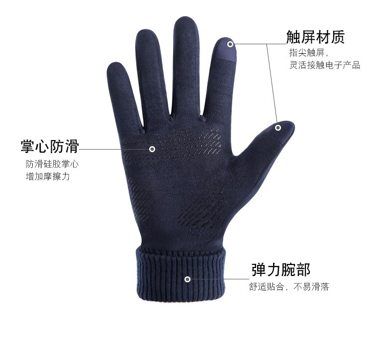 여성용 겨울 스웨이드 장갑, 벨벳, 두껍고 따뜻함, 터치 스크린, 방풍, 미끄럼 방지, 운전, 야외 스포츠, 사이클링 및 남성용 달리기