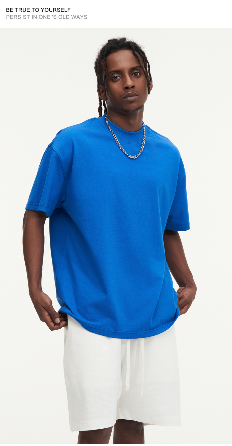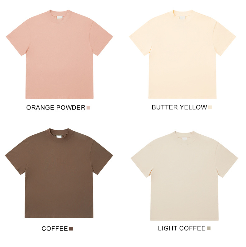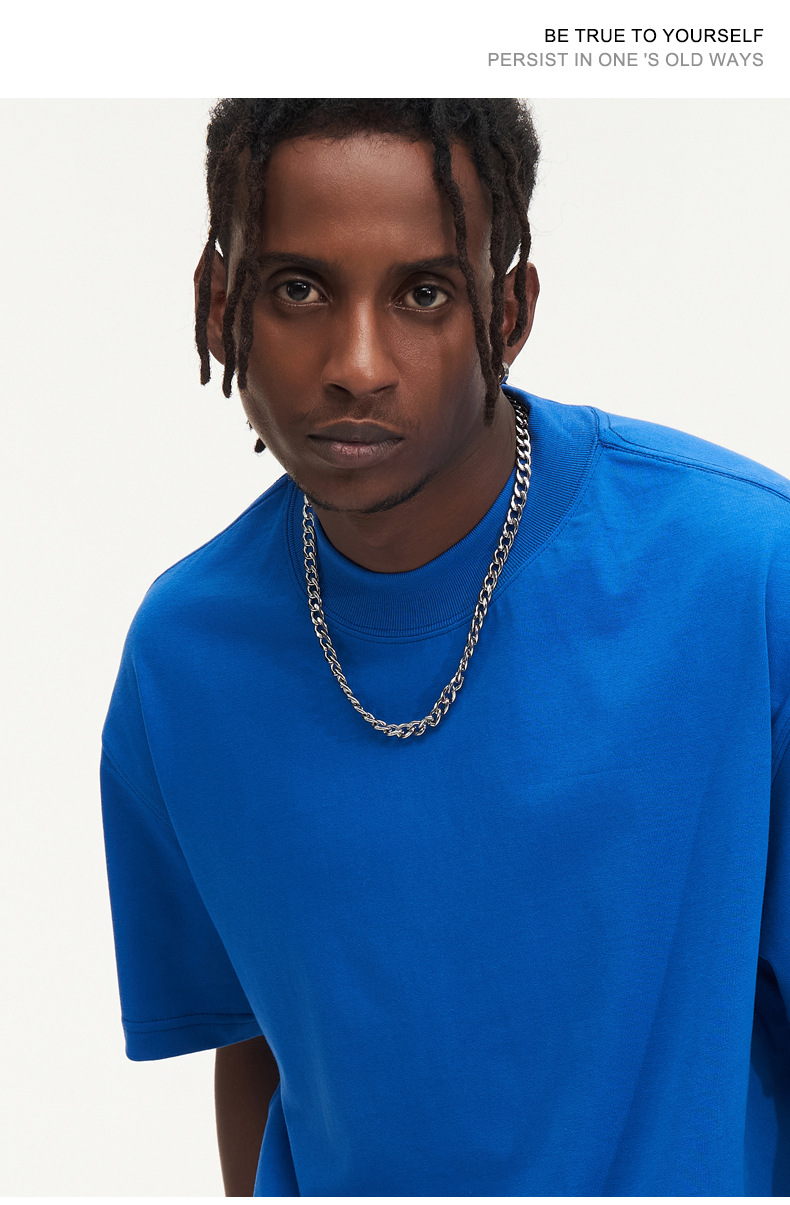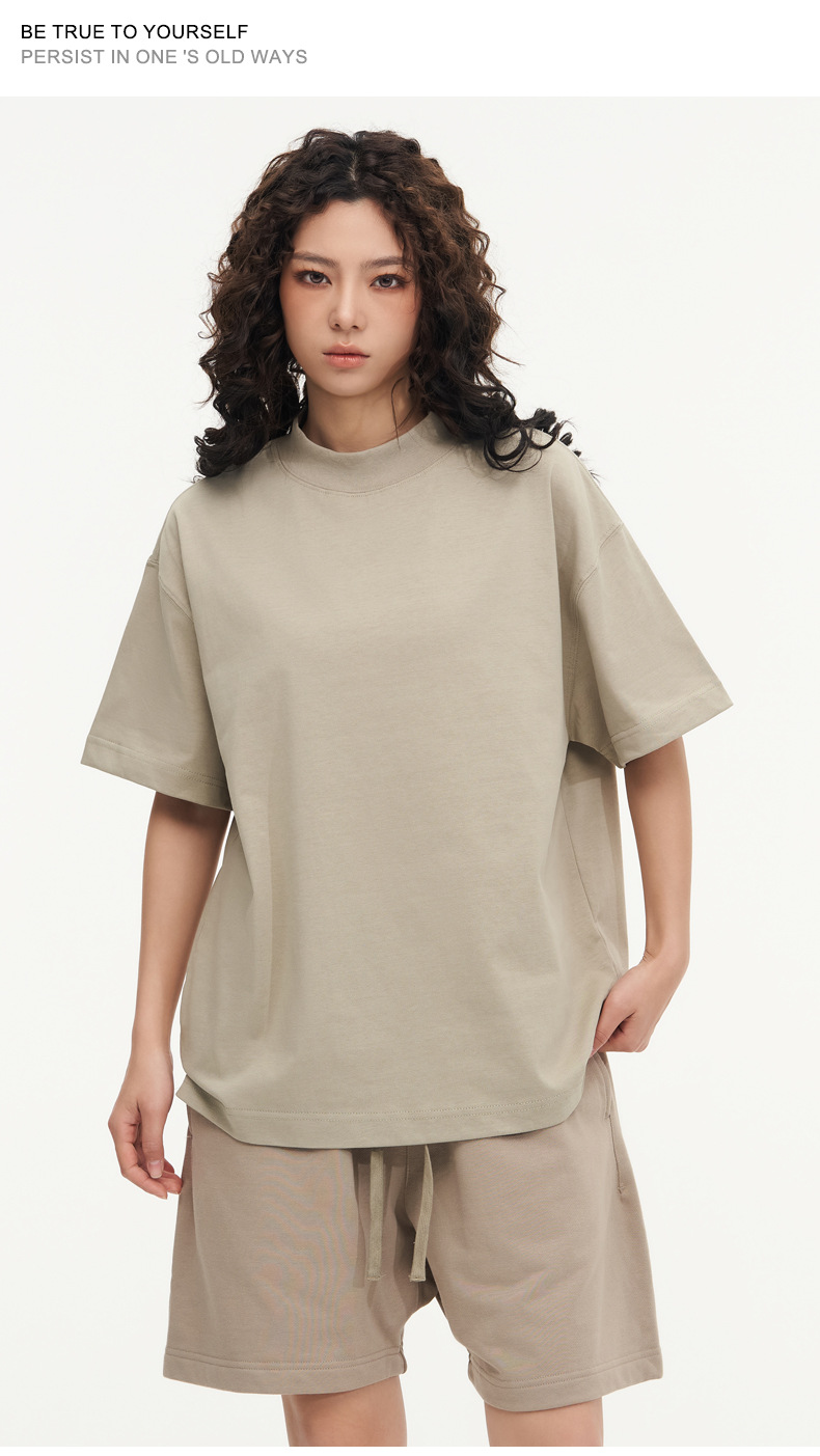 2025 트렌디 브랜드 헤비 솔리드 컬러 반팔 셔츠 T270g 하이 칼라 남성 필수품 같은 스타일 반팔 남성
