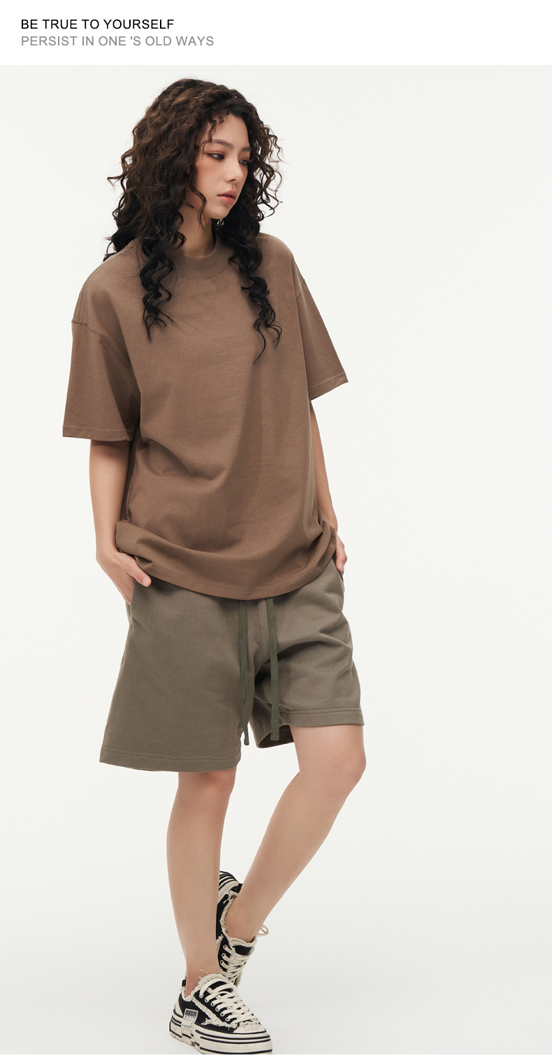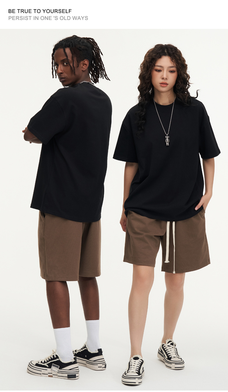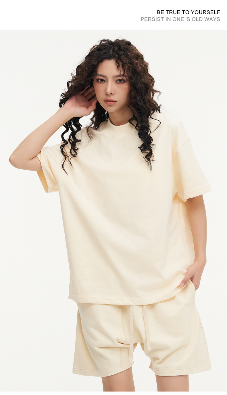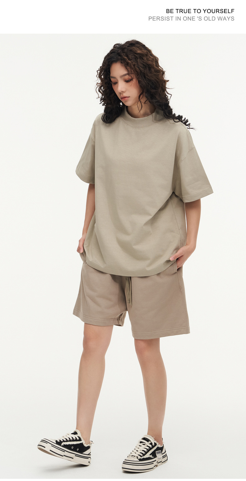 2025 트렌디 브랜드 헤비 솔리드 컬러 반팔 셔츠 T270g 하이 칼라 남성 필수품 같은 스타일 반팔 남성