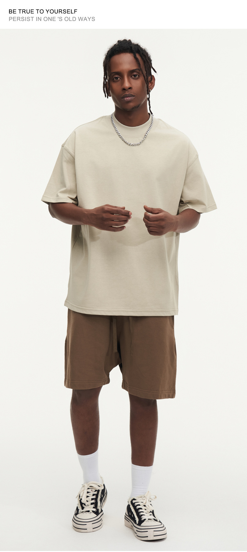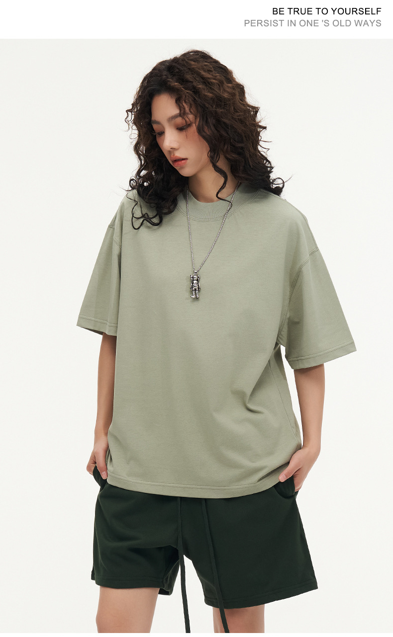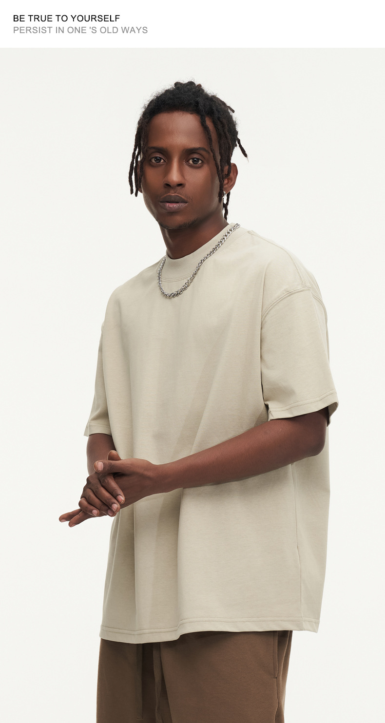 2025 트렌디 브랜드 헤비 솔리드 컬러 반팔 셔츠 T270g 하이 칼라 남성 필수품 같은 스타일 반팔 남성스토어 가기