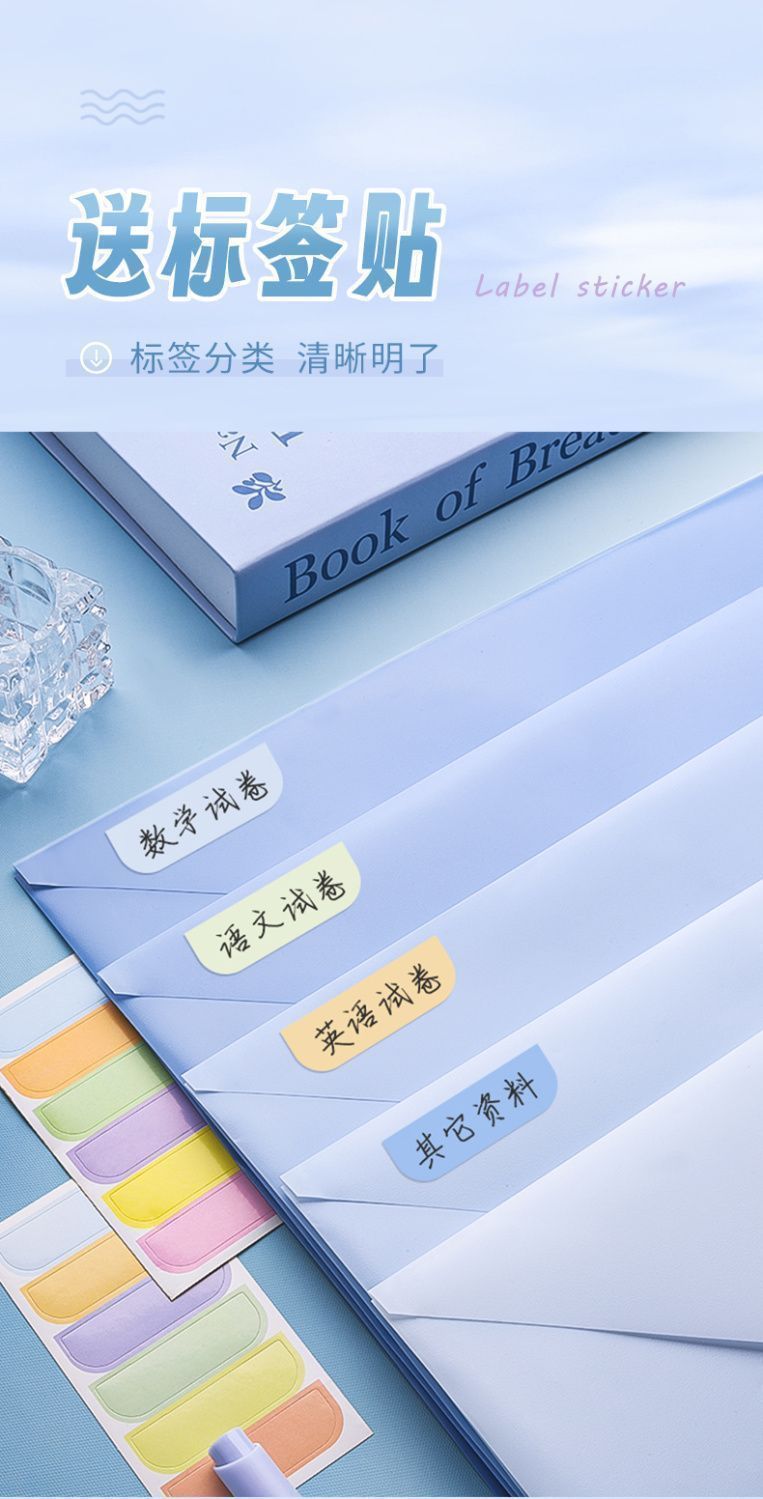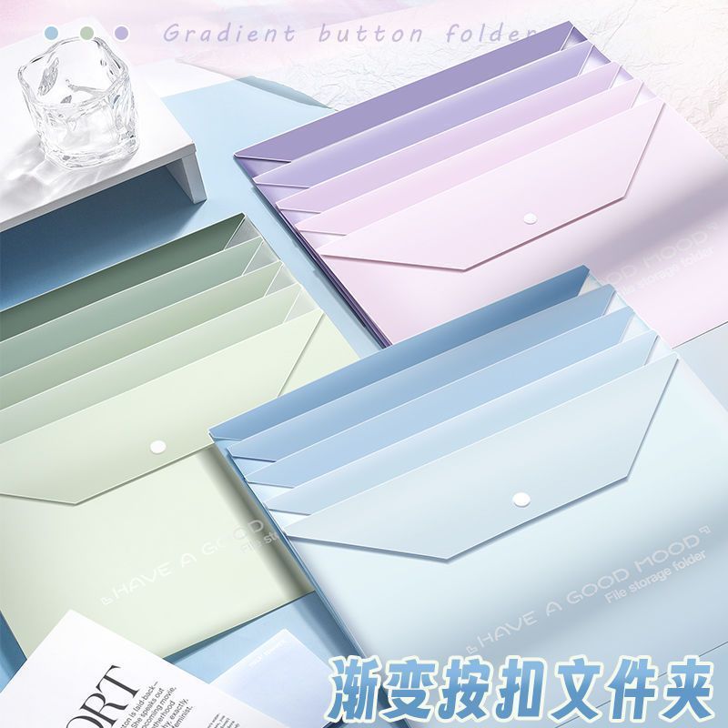 학생을 위한 그라디언트 A4 파일 가방 스냅 버튼 두꺼운 대용량 시험지 보관 가방 데이터 파일 가방 PVC 방수스토어 가기