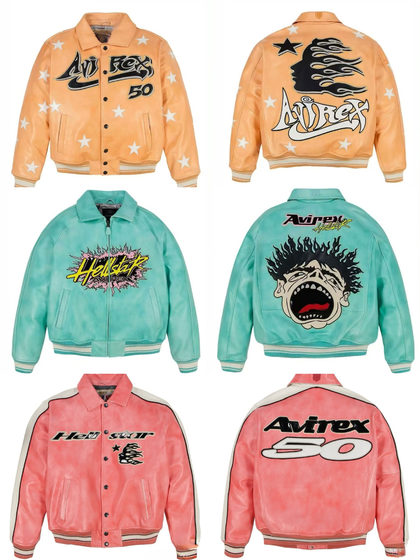미국 트렌드 브랜드 아비렉스 X 헬스타 가죽 재킷, 루즈핏 힙합 하이스트리트 남성용 미국 스타일스토어 가기