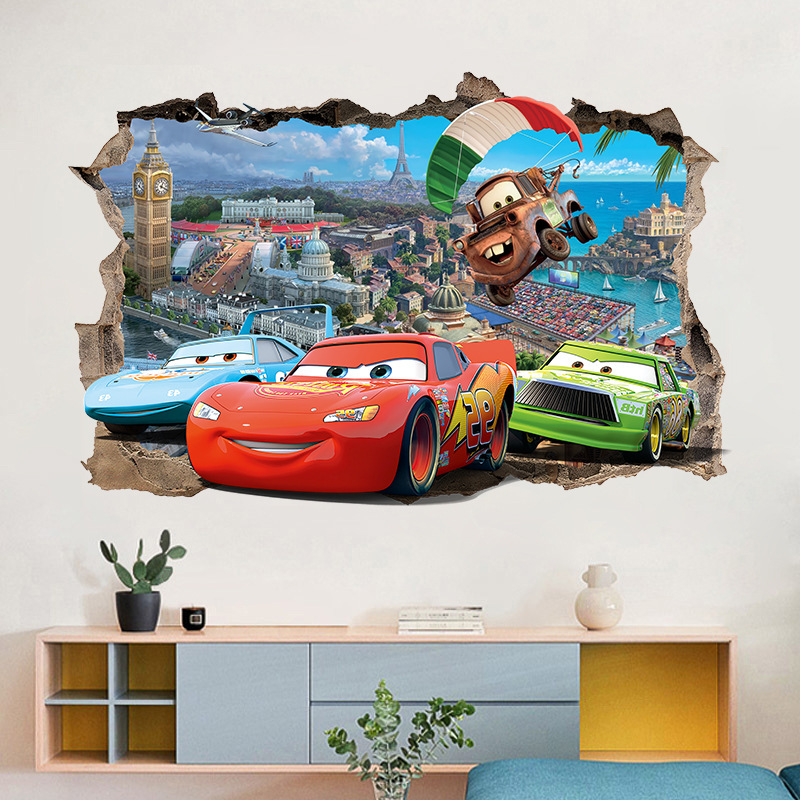 대외 무역 도매 새로운 자동차 이야기 3D 깨진 벽 스티커 배경 벽 장식 자체 접착 스티커 이동식