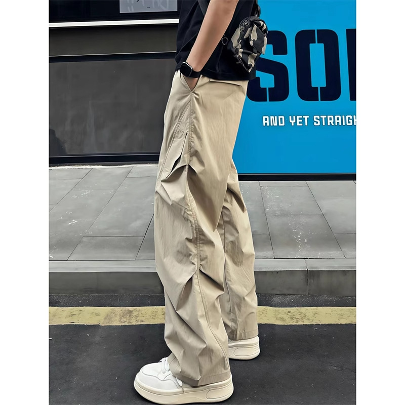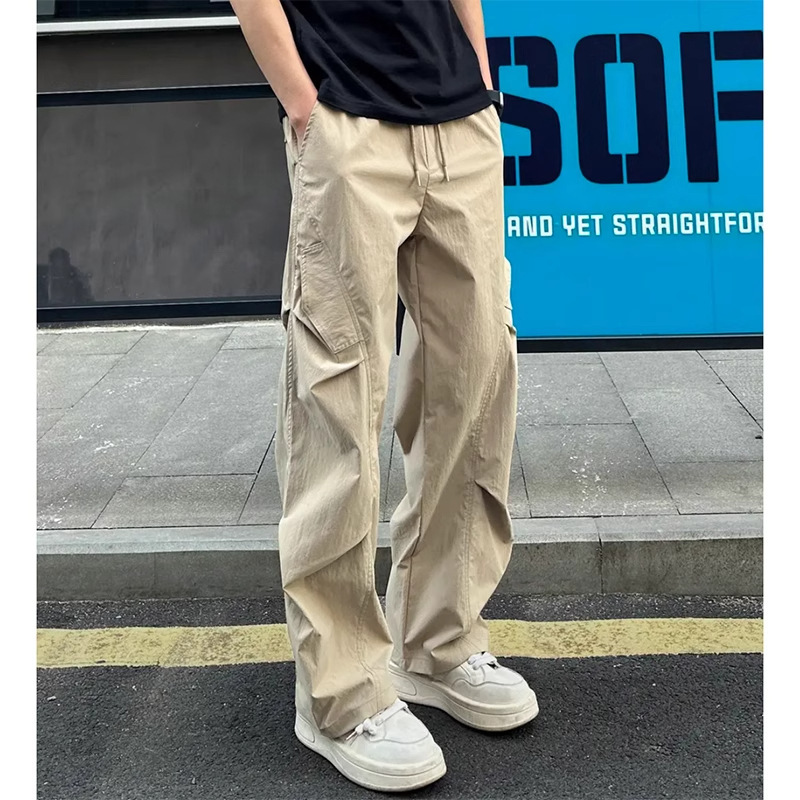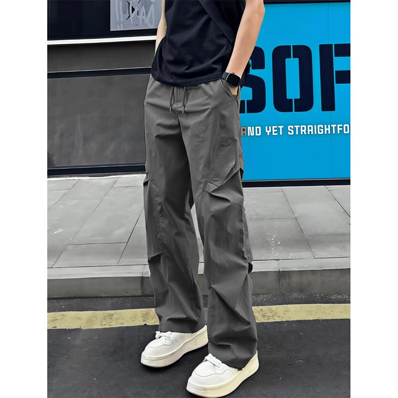 아메리칸 아이스 실크 속건성 바지 남성 여름 얇은 주름 파라트리퍼 작업복 청소년 루즈 캐주얼 스포츠 바지스토어 가기