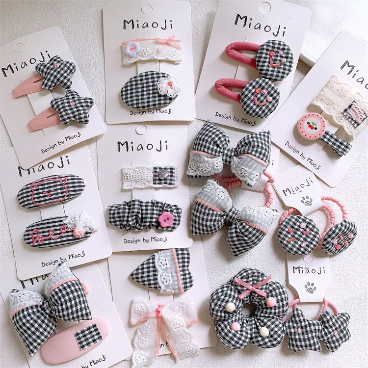 어린이 검은 격자 무늬 활 스타 헤어핀 헤어 밴드 소녀 뱅 부러진 머리 BB 클립 헤어 스트랩 헤어 로프스토어 가기