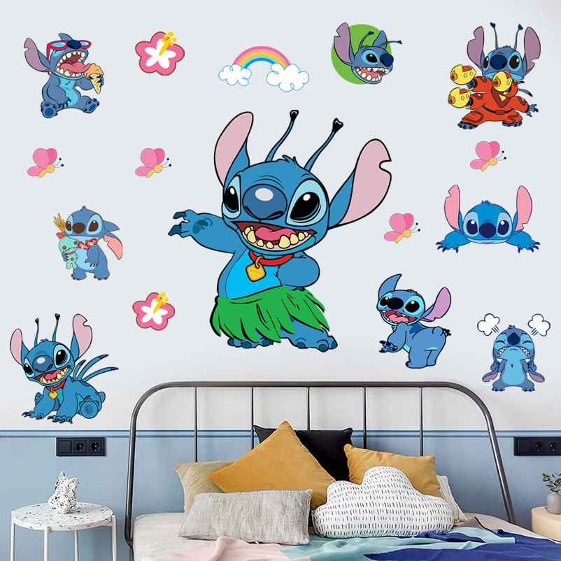 국경 간 새로운 스티치 스티커 만화 애니메이션 자체 접착 어린이 방 스타 아기 벽 스티커 PVC 장식 스티커스토어 가기