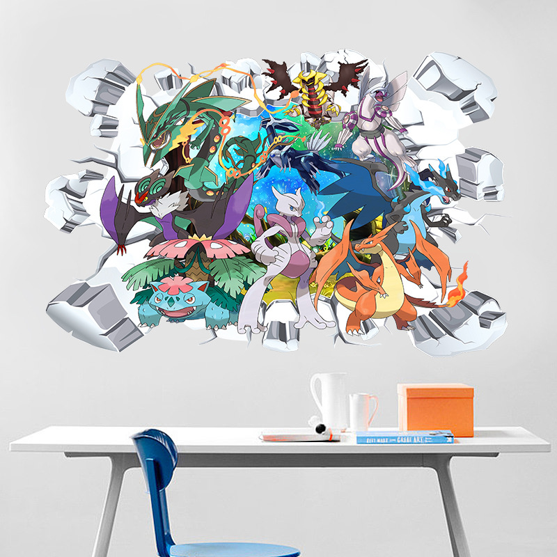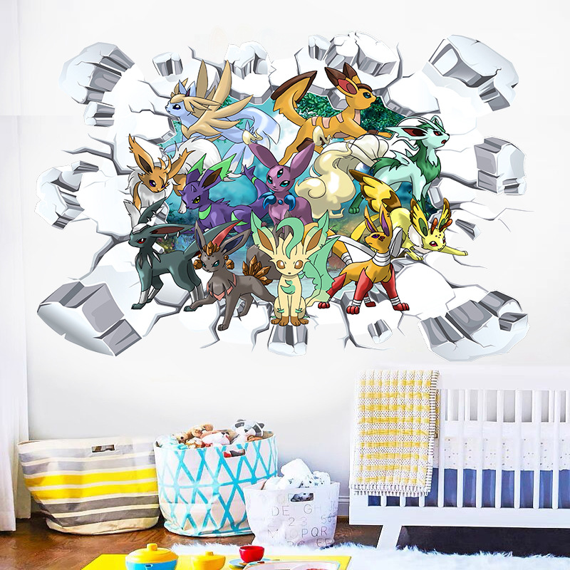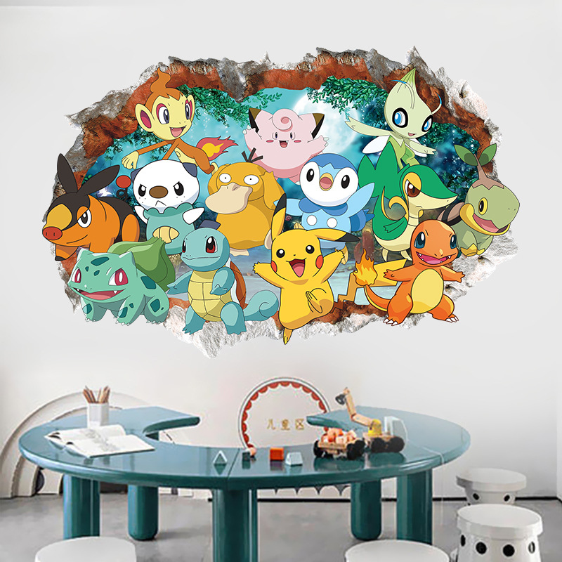 국경 만화 엘프 3D 벽 스티커 어린이 방 벽 장식 낙서 피카추 스티커 자체 접착 PVC 스티커스토어 가기