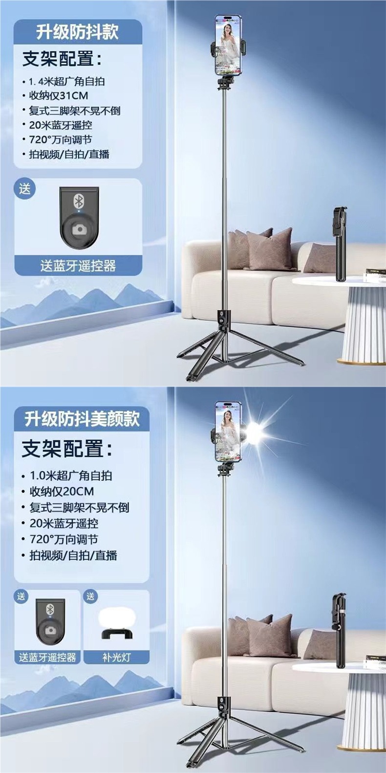• 스타라이트 화이트 [블루투스 리모컨 + 통합 스토리지]-[여행] 1.70m + 필라이트丨 듀플렉스 킬 삼각대