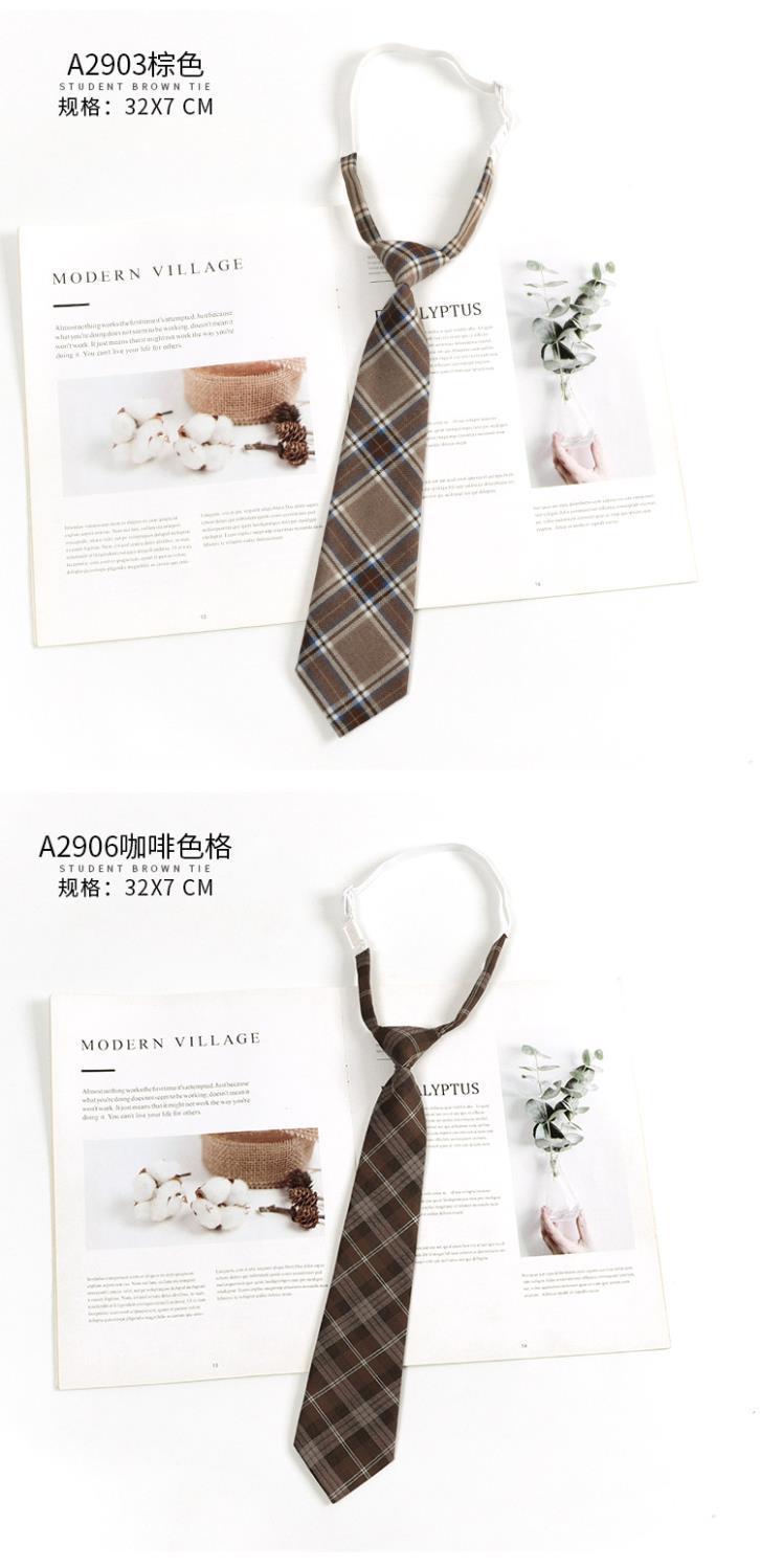 브라운 체크 무늬 스트라이프 게으른 일본 대학 스타일 갈색 넥타이 남성 복고풍 학사복 넥타이 여성 트렌디스토어 가기