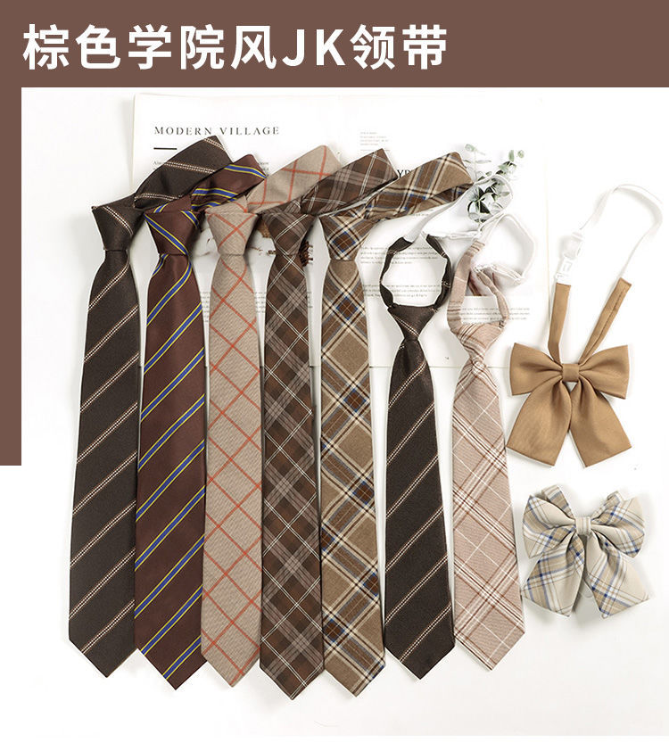 브라운 체크 무늬 스트라이프 게으른 일본 대학 스타일 갈색 넥타이 남성 복고풍 학사복 넥타이 여성 트렌디