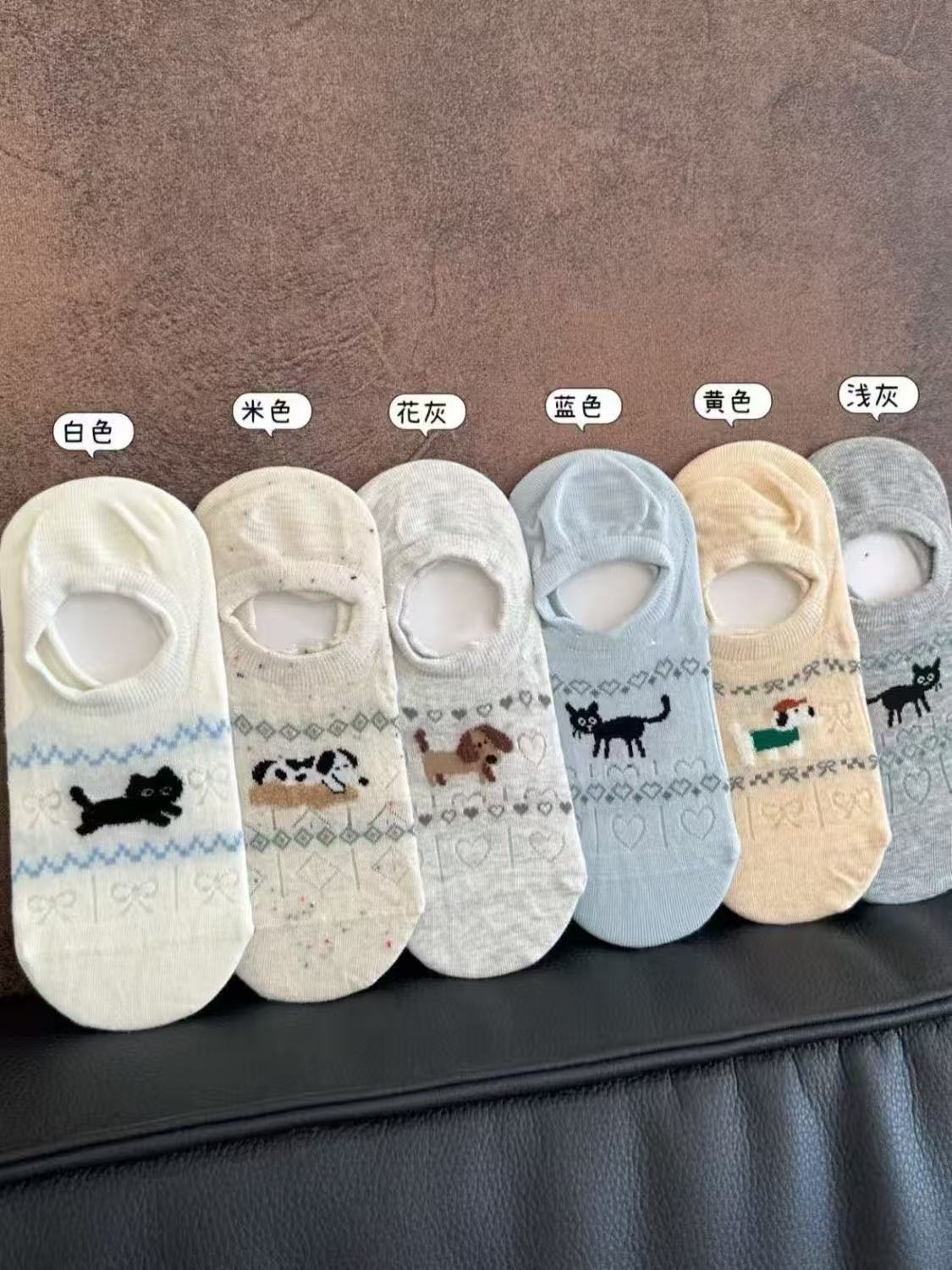 봄 여름 로우탑 인비저블 양말 만화 스타일 페어 아일 요소 귀여운 리본 사랑 고양이와 강아지 보트 양말