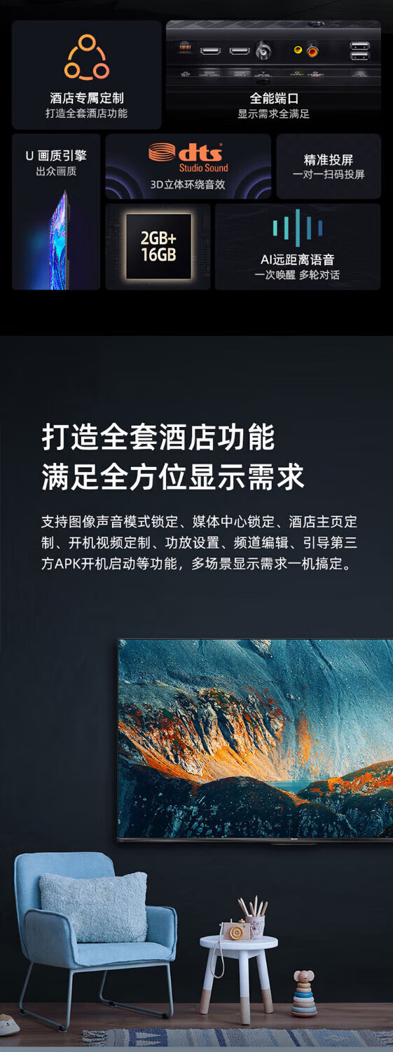 4K 초고화질 TV 55H6K 55inch 호텔 상업용 LCD 평면 TV 스마트 네트워크 AI 원거리 음성스토어 가기