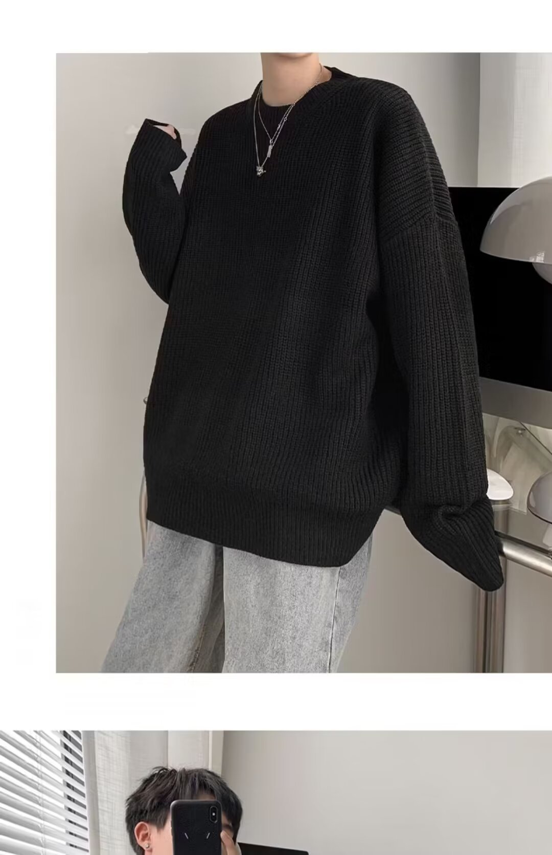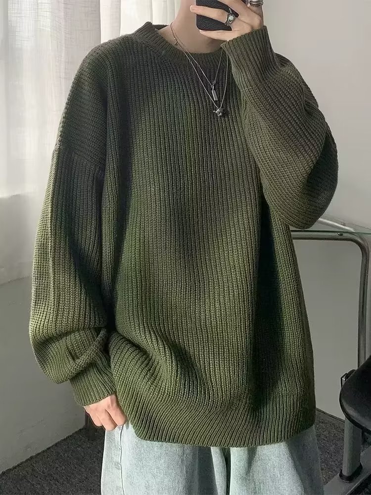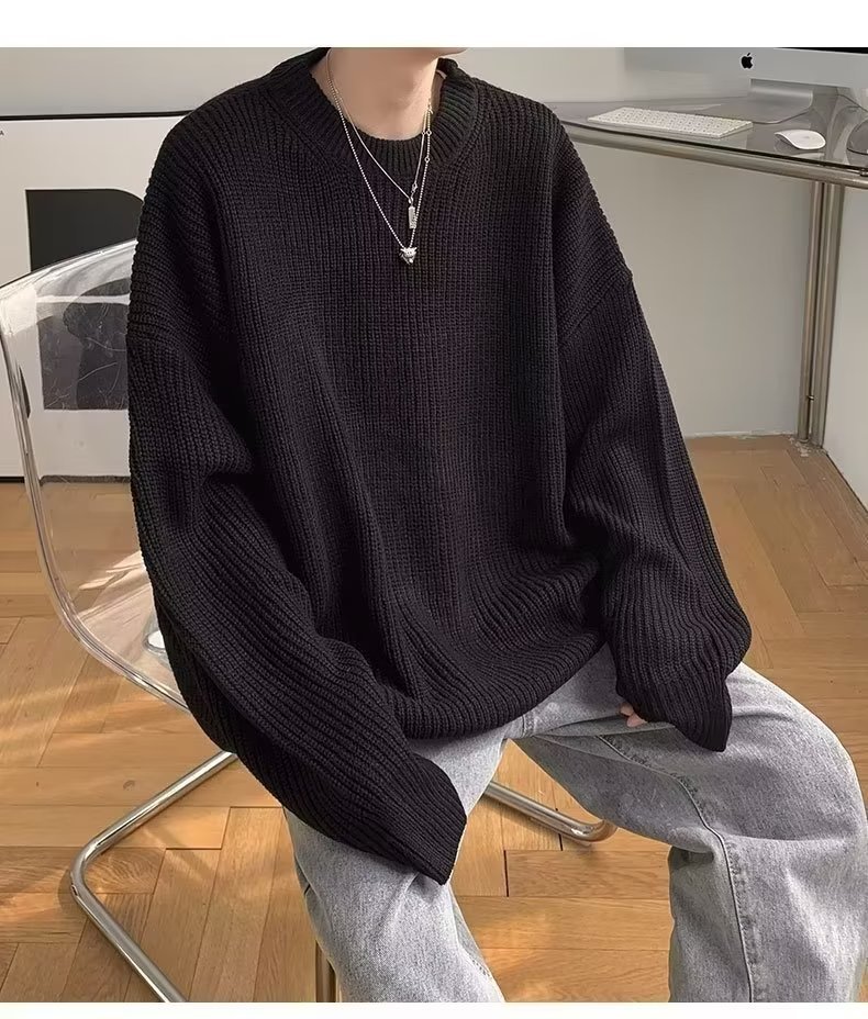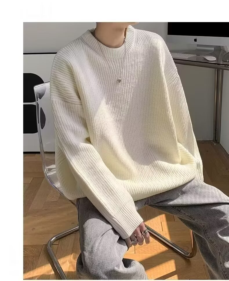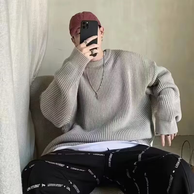 가을, 겨울 솔리드 컬러 라운드 넥 스웨터 남성 한국 스타일 트렌디 루즈 다목적 두꺼운 스웨터 ins 캐주얼 스웨터스토어 가기