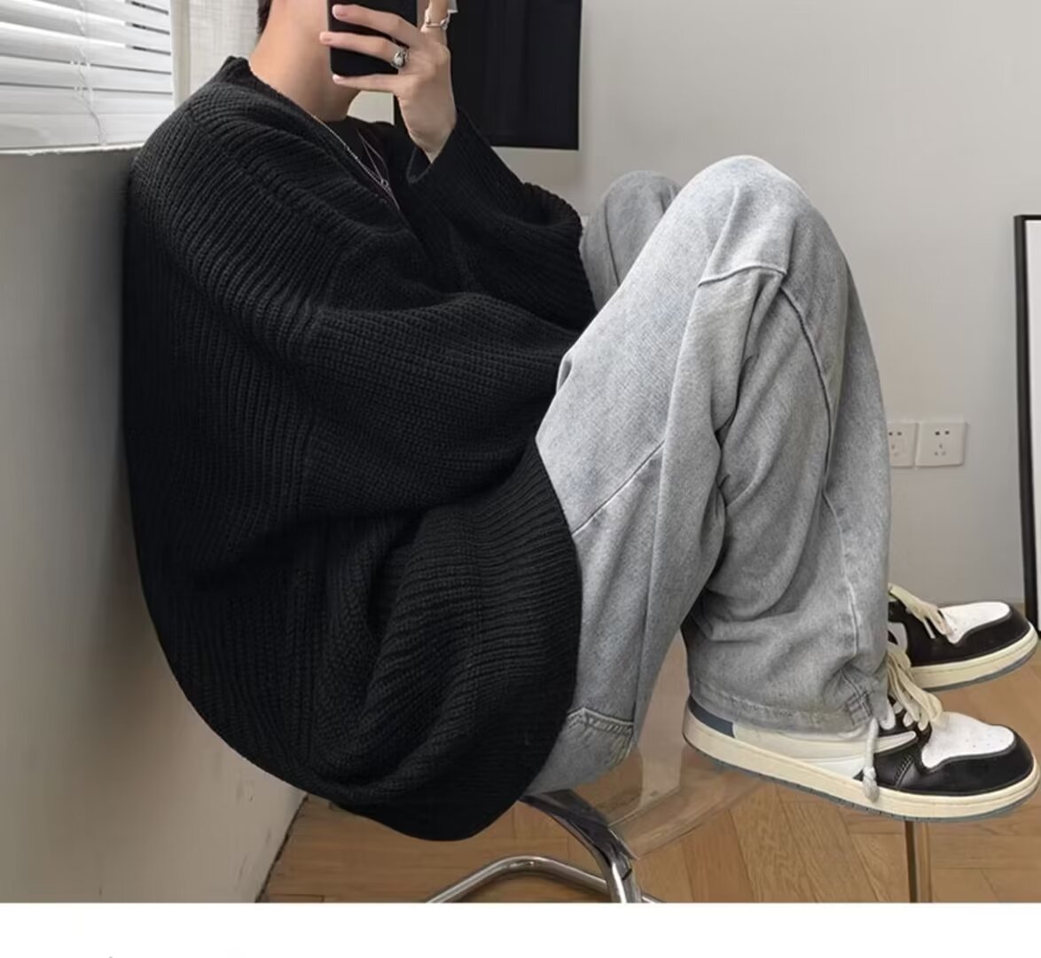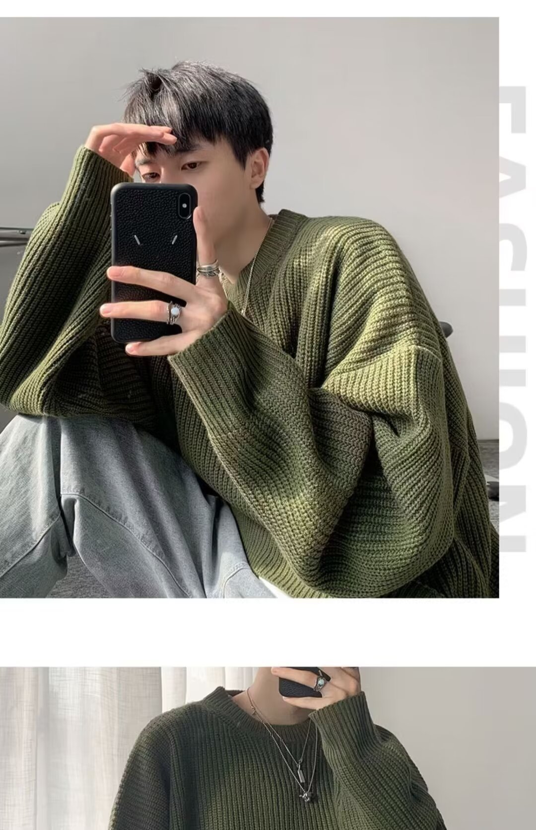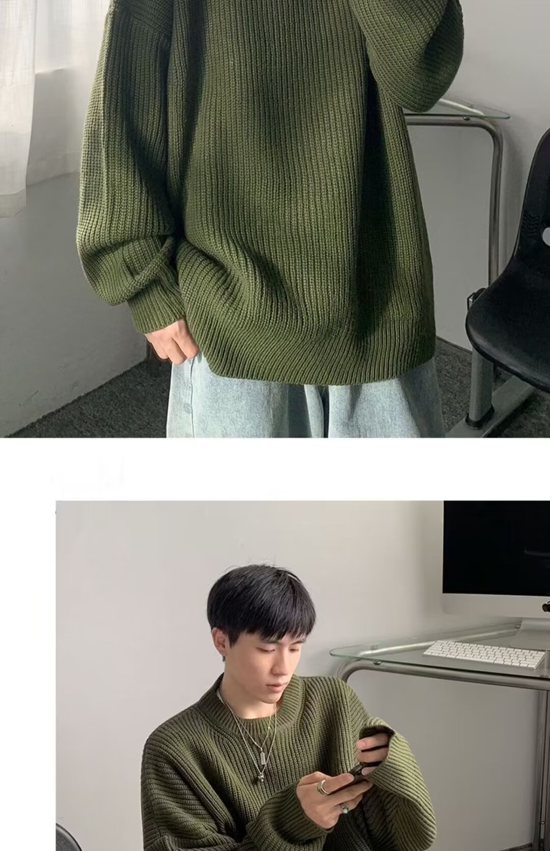 가을, 겨울 솔리드 컬러 라운드 넥 스웨터 남성 한국 스타일 트렌디 루즈 다목적 두꺼운 스웨터 ins 캐주얼 스웨터스토어 가기