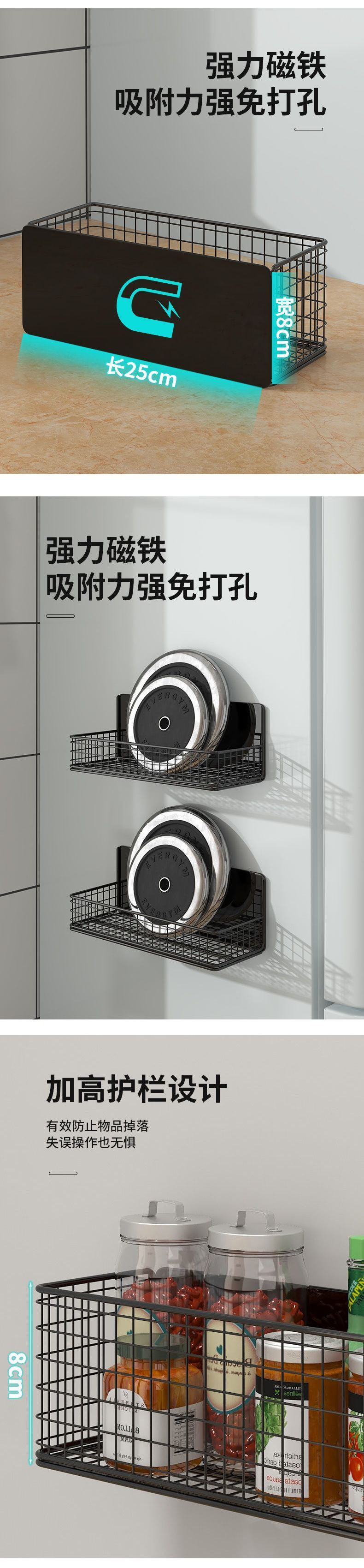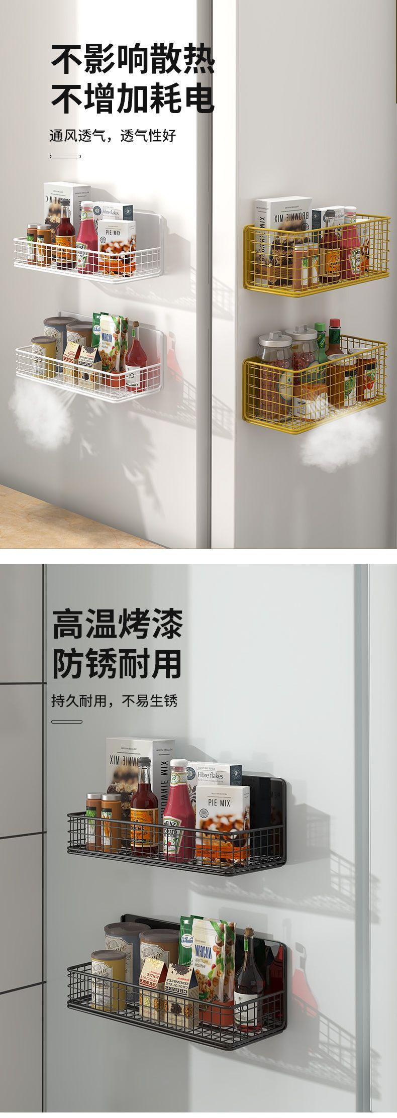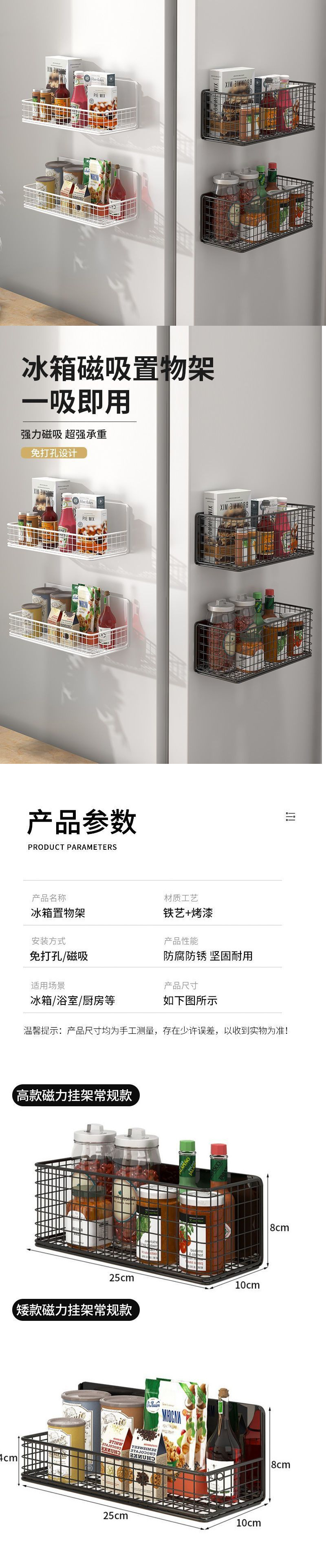 냉장고 선반 측면 수납 걸이 자석 펀치 없는 주방 입구 도어 수납 상자 벽 측면 다층 신규