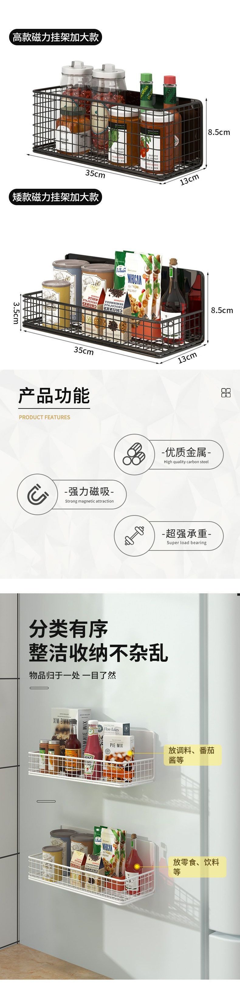 냉장고 선반 측면 수납 걸이 자석 펀치 없는 주방 입구 도어 수납 상자 벽 측면 다층 신규스토어 가기