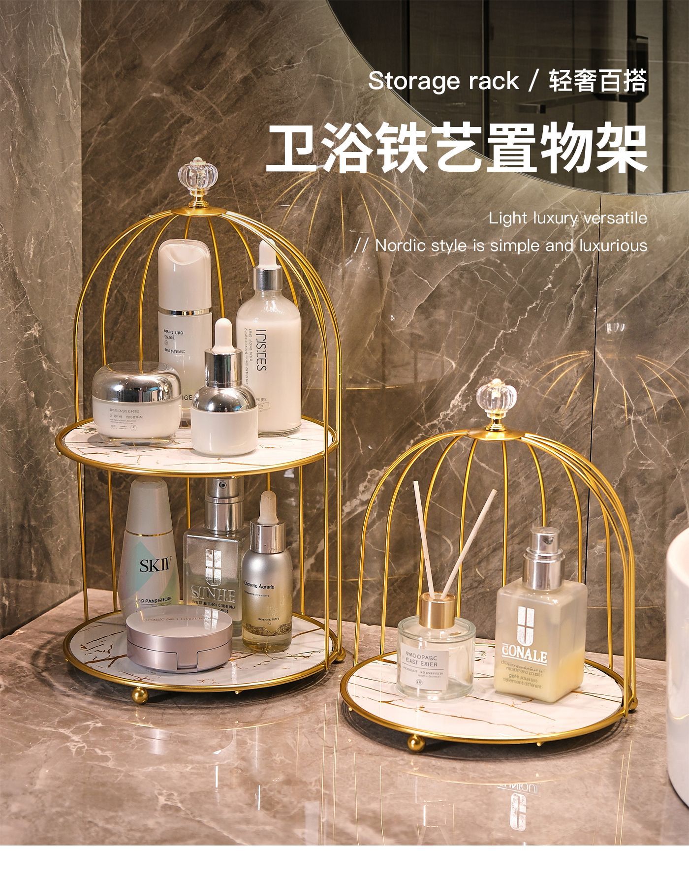 철제 욕실 데스크탑 보관함 카운터 탑 립스틱 화장품 보관함 욕실 싱크대 새장 보관함스토어 가기