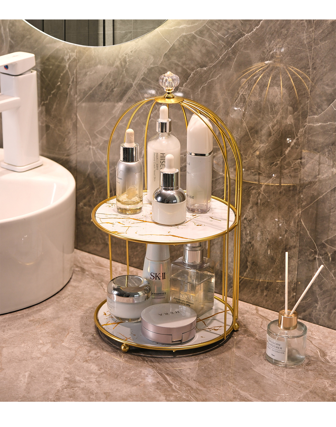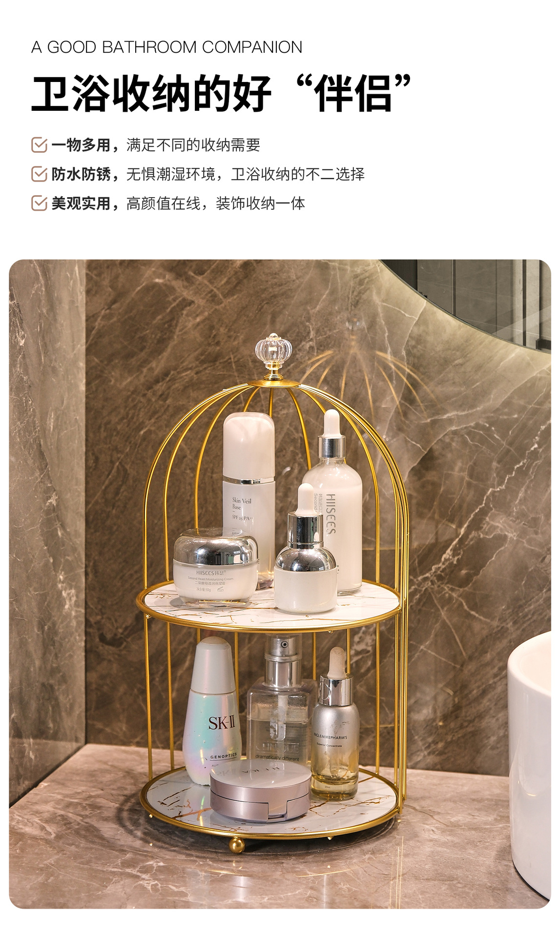 철제 욕실 데스크탑 보관함 카운터 탑 립스틱 화장품 보관함 욕실 싱크대 새장 보관함