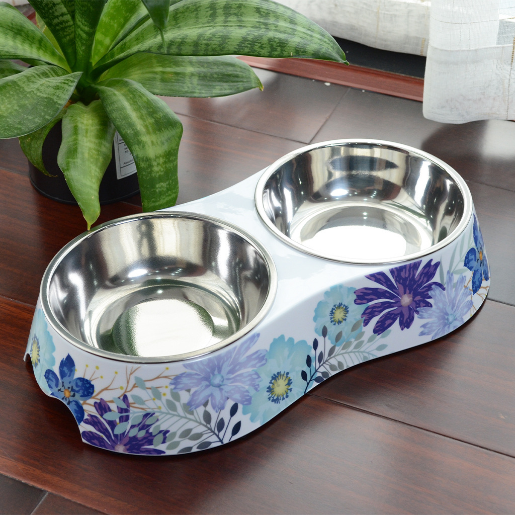 스테인레스 스틸 그릇이있는 이중 그릇 고양이 그릇 개 그릇 고양이 그릇 흔들림 방지 애완 동물 먹이 물 그릇 식기 고양이 그릇