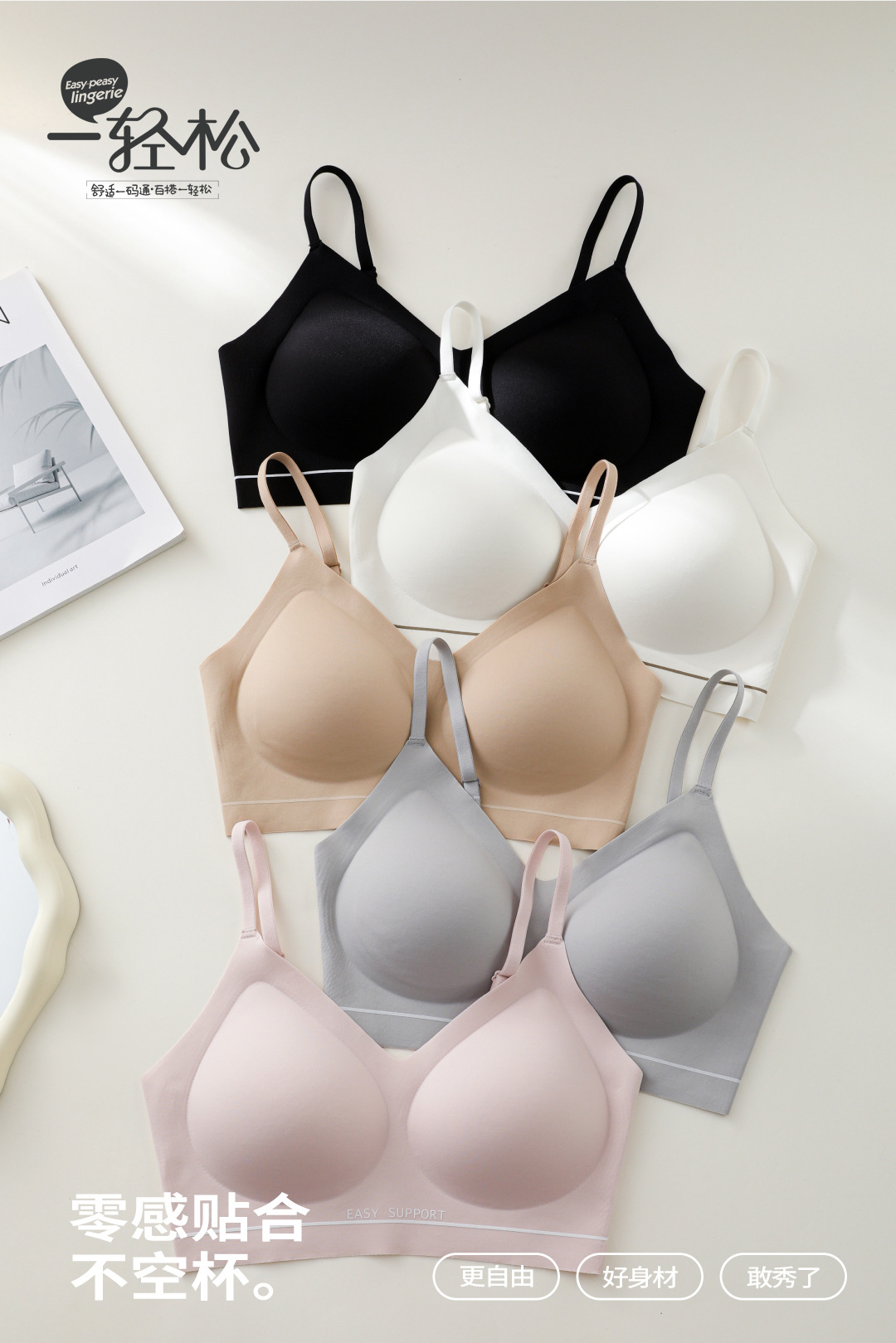 새로운 1570 노와이어 편안한 제로 제약 스포츠 브라 여성용 누드 피부 친화적인 심리스 뷰티 백 브라