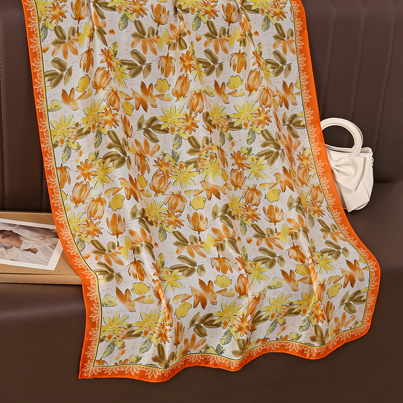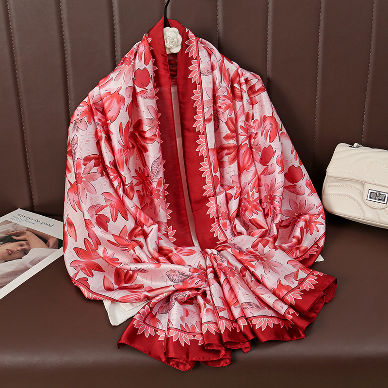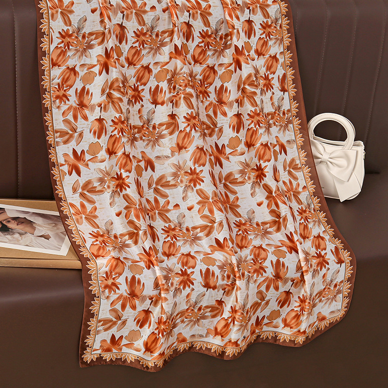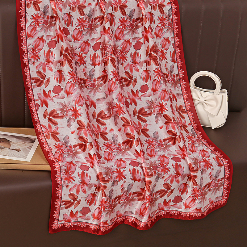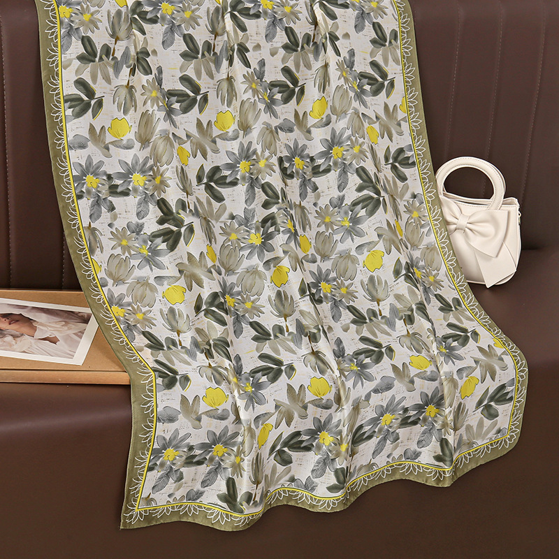 봄 여름 가을 새로운 신선한 식물 나무 잎 브로케이드 긴 실크 스카프 우아한 여성 장식 외부 목도리