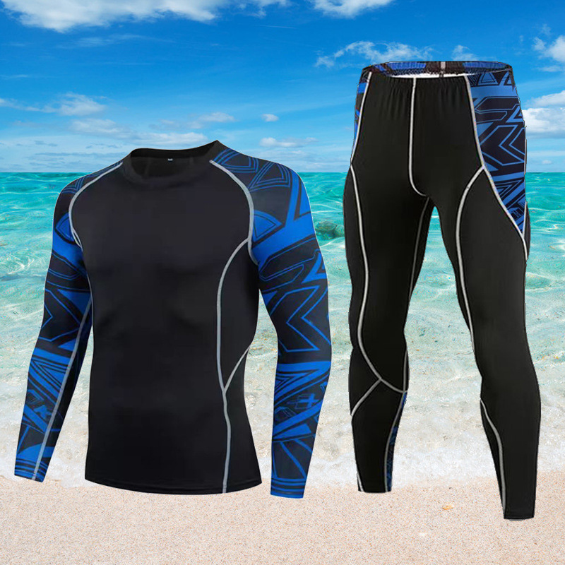 수영복 세트 남성용 전신 자외선 차단 긴팔 긴 바지 수영 바지 따뜻한 수영 탑 서핑 스노클링 해파리 잠수복