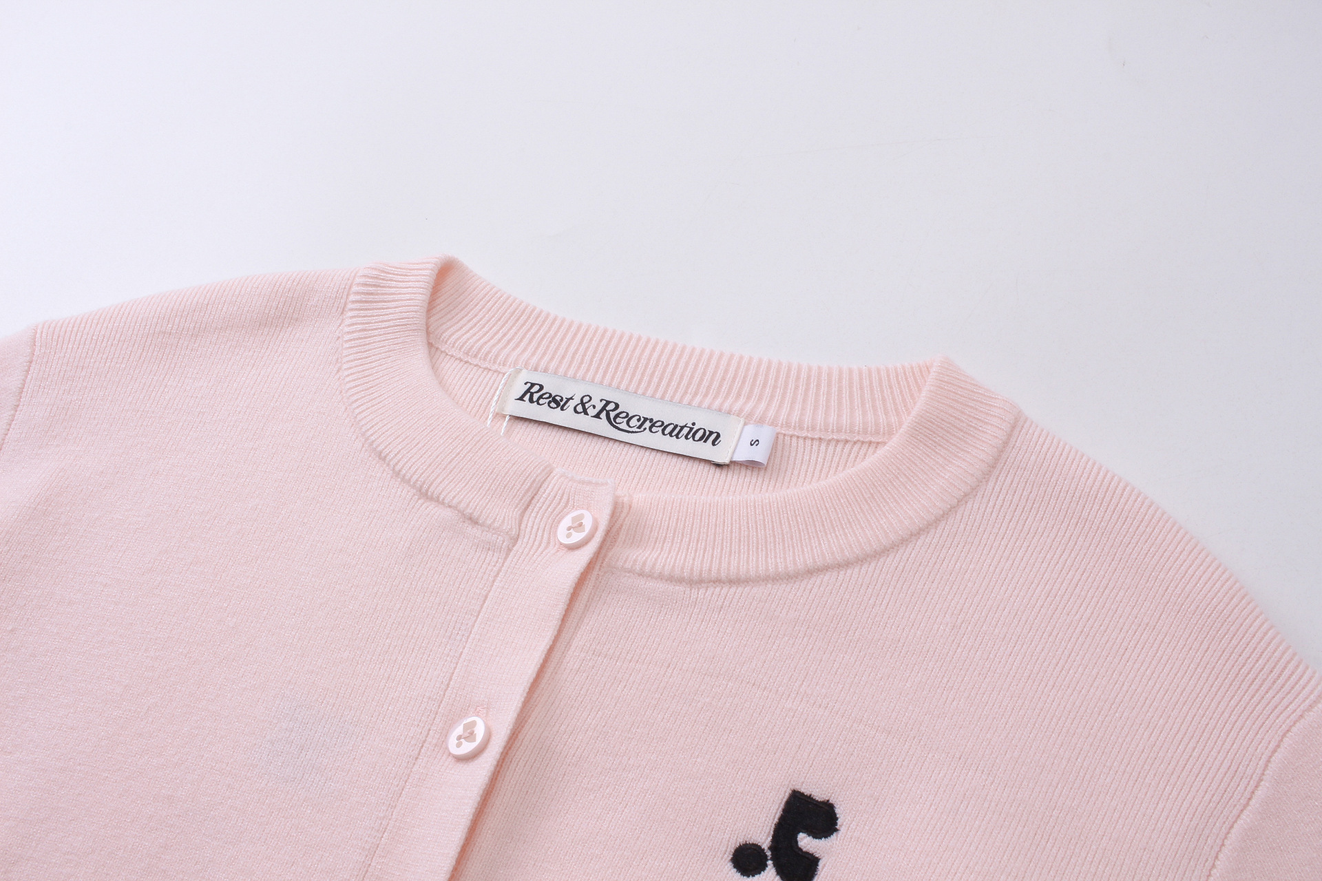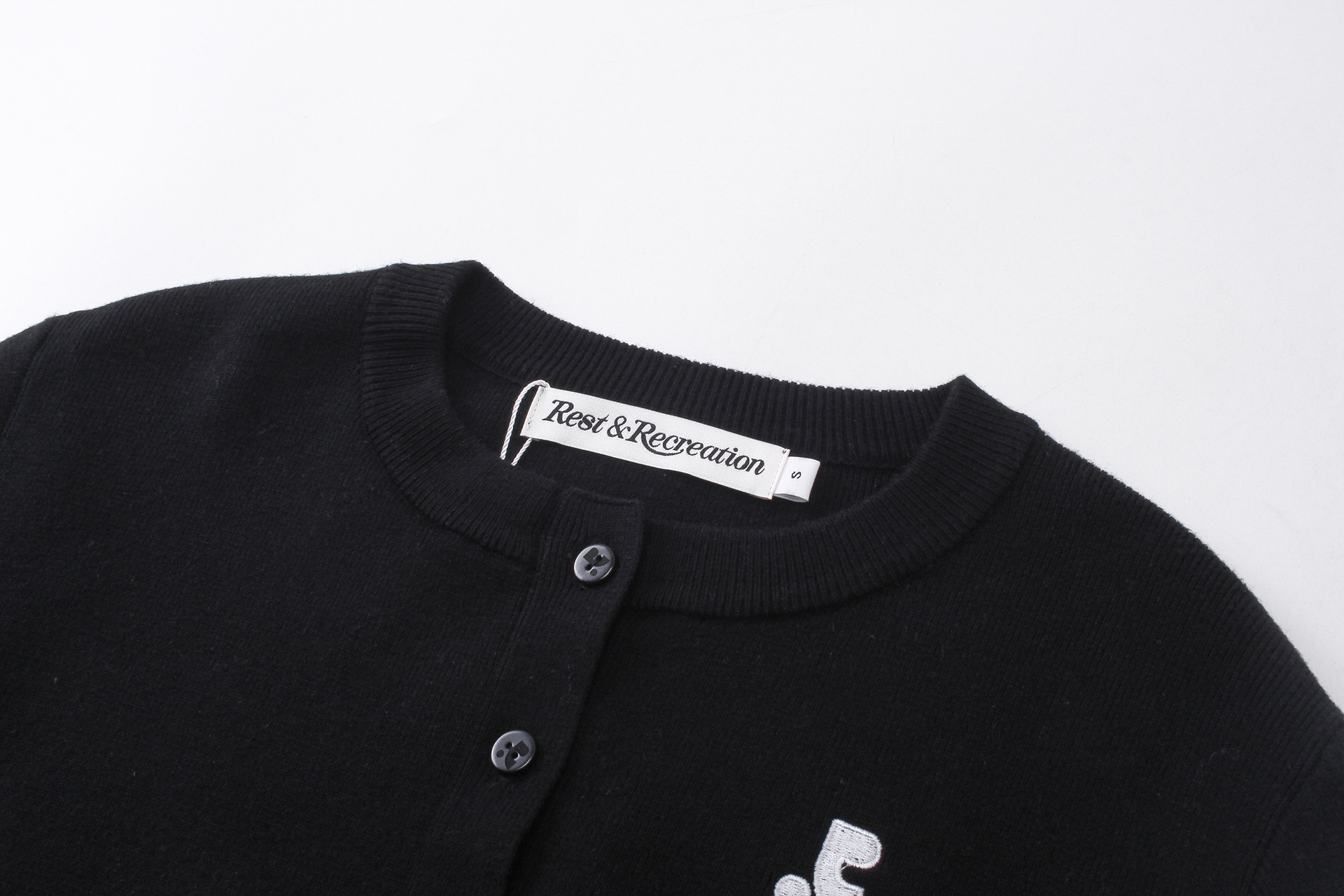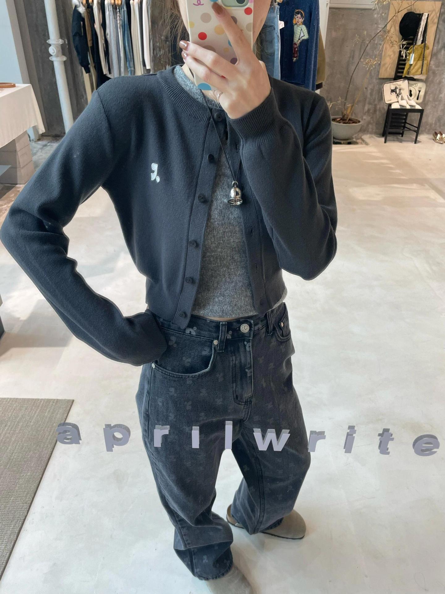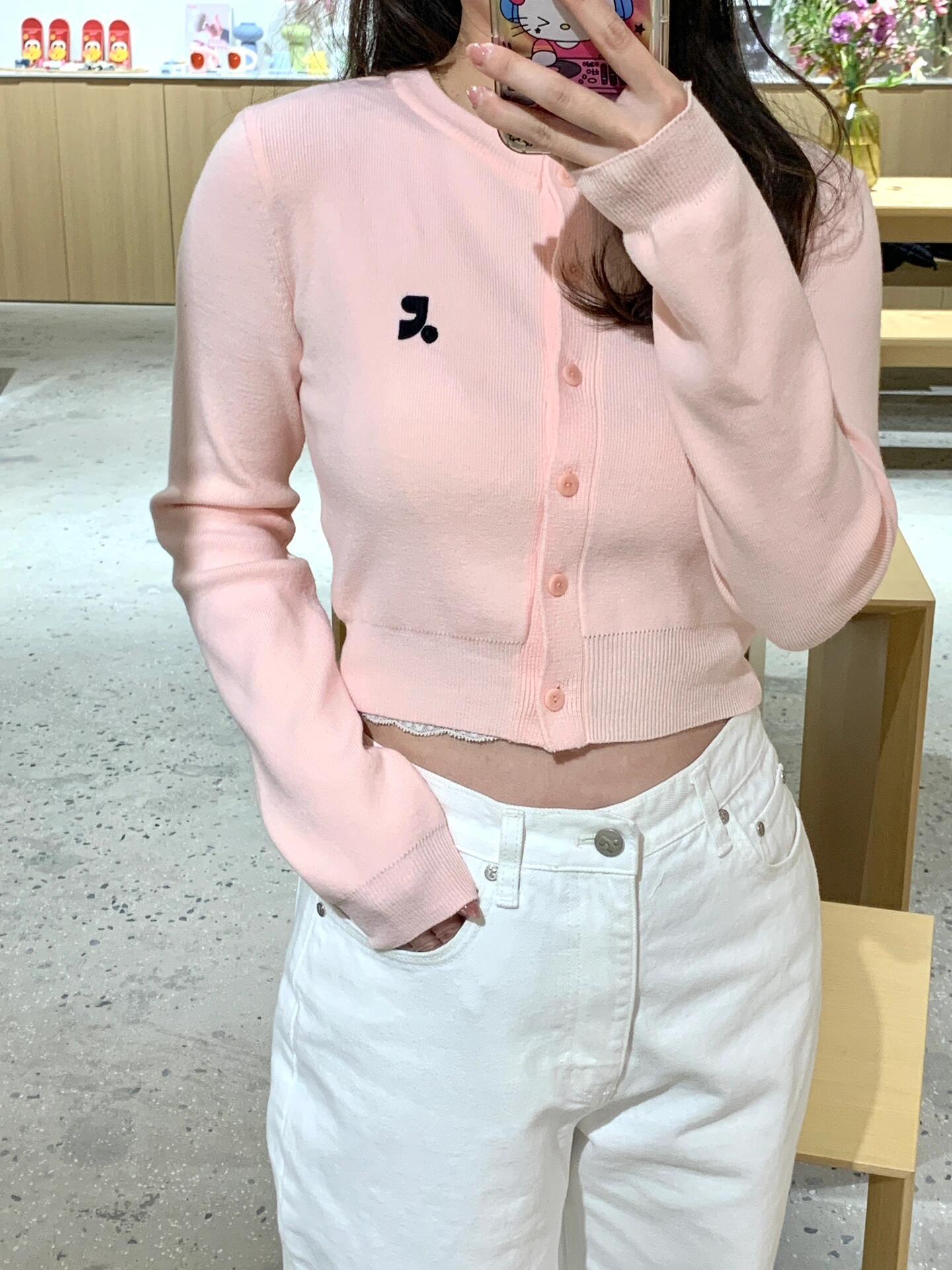 한국 트렌디 브랜드 restandrecreation 짧은 슬림 니트 스웨터 RR 자수 카디건 스웨터 재킷 여성용스토어 가기