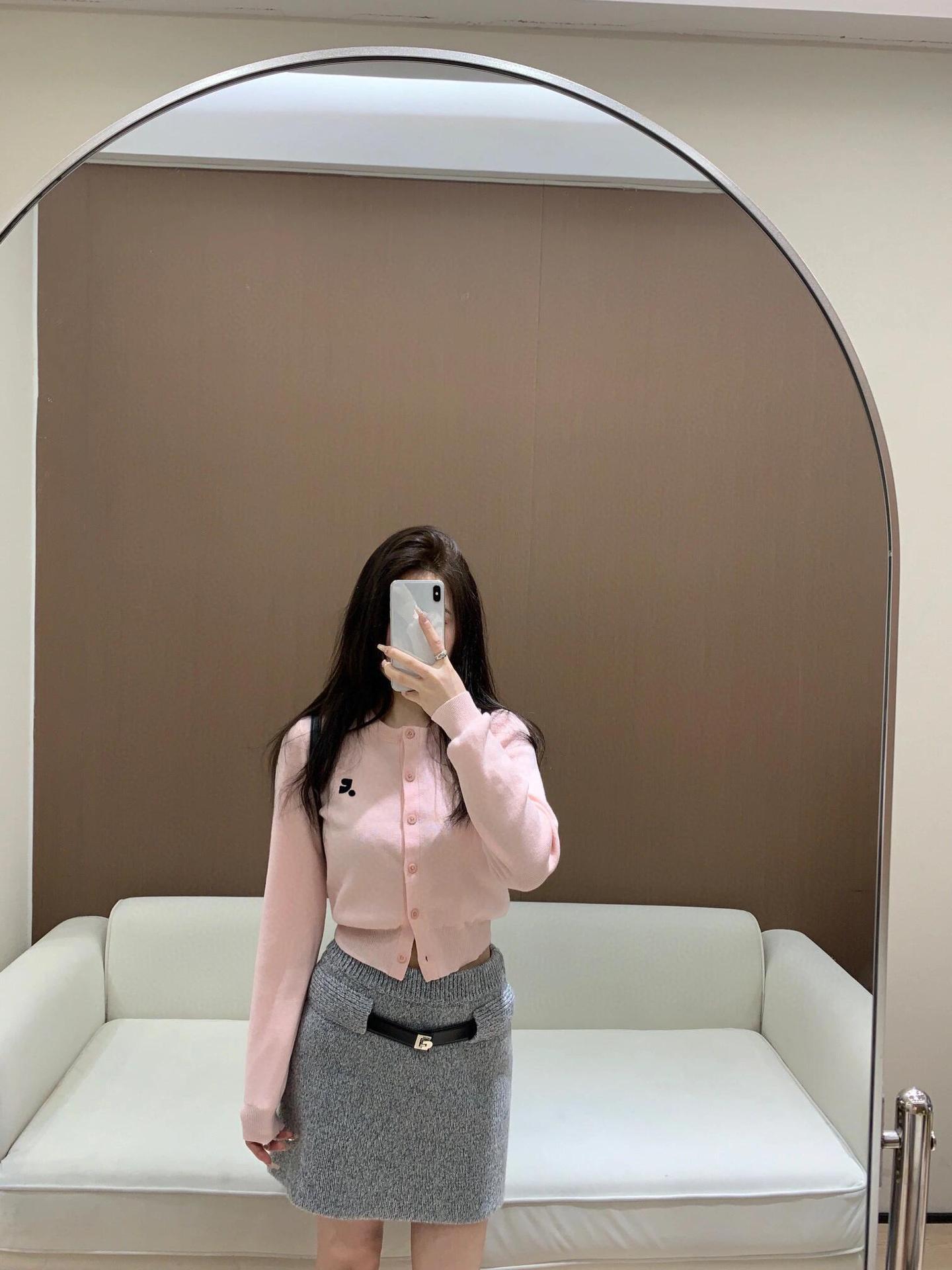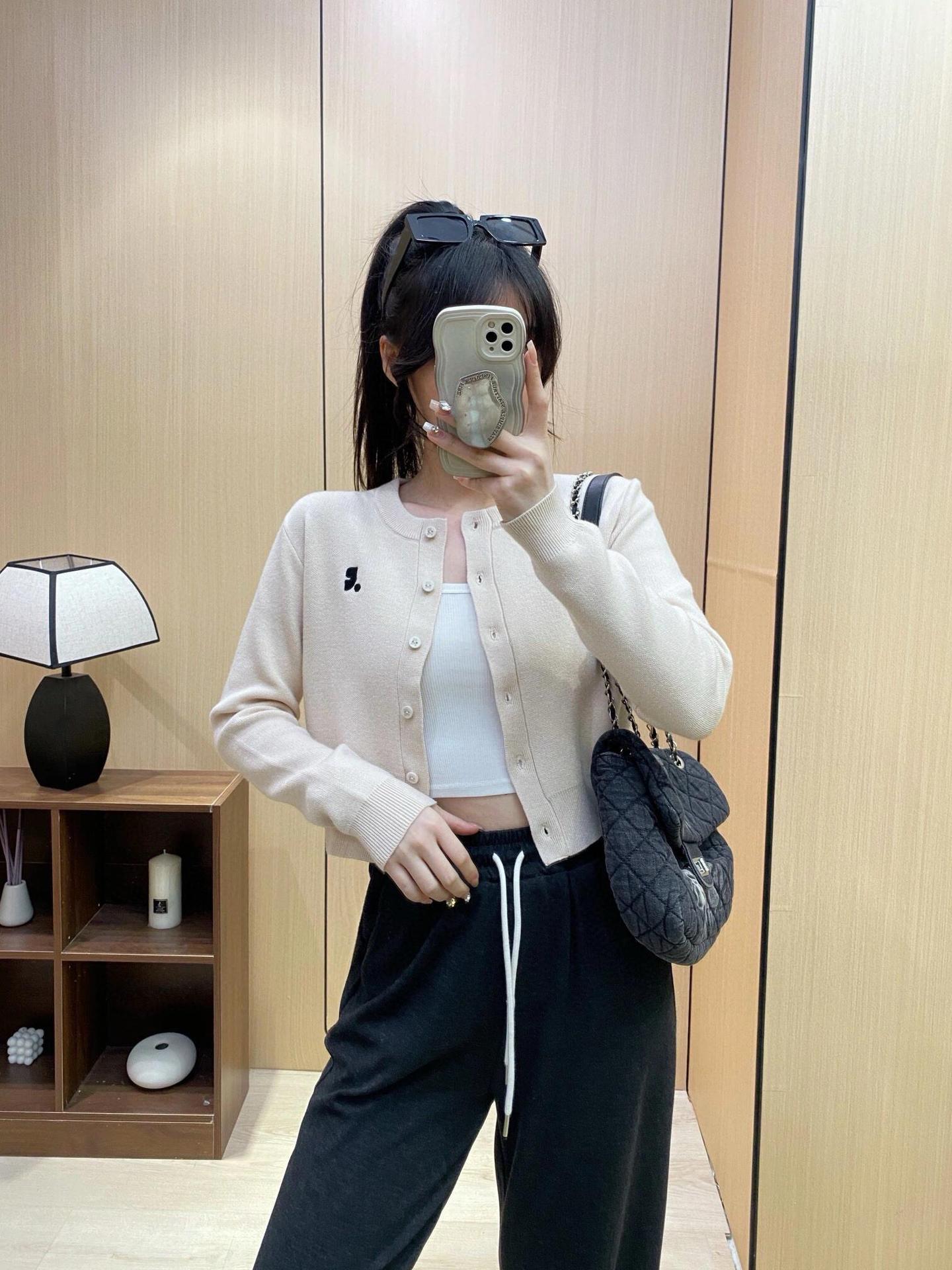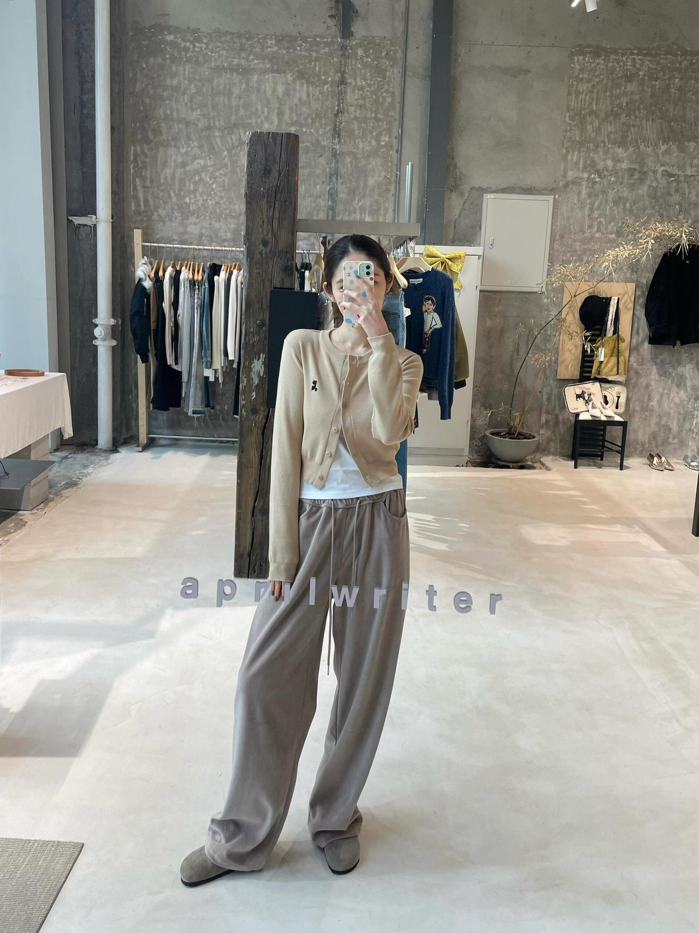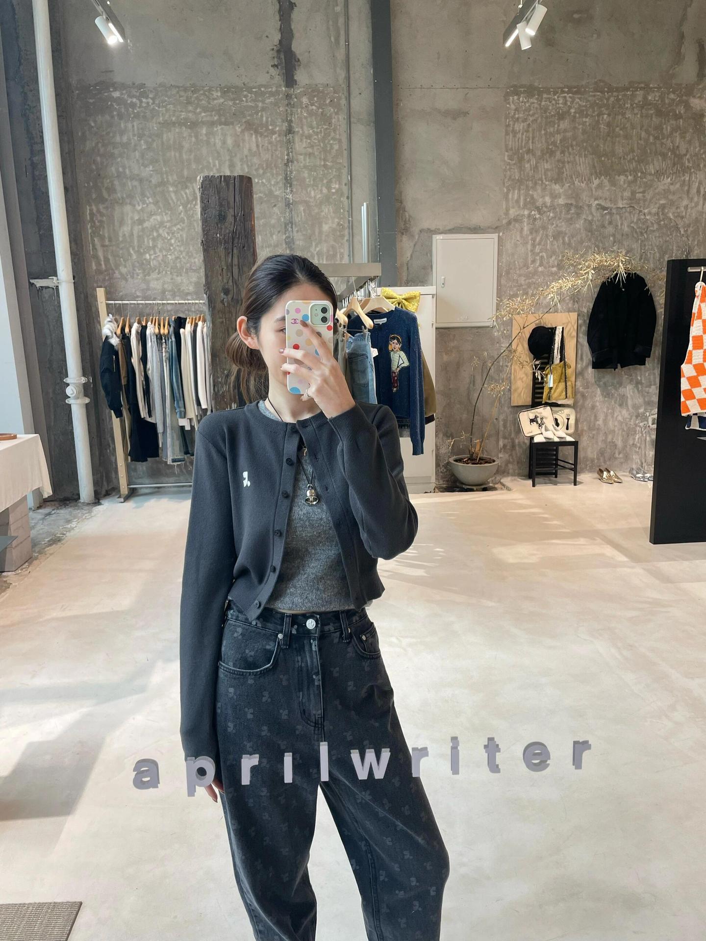 한국 트렌디 브랜드 restandrecreation 짧은 슬림 니트 스웨터 RR 자수 카디건 스웨터 재킷 여성용스토어 가기